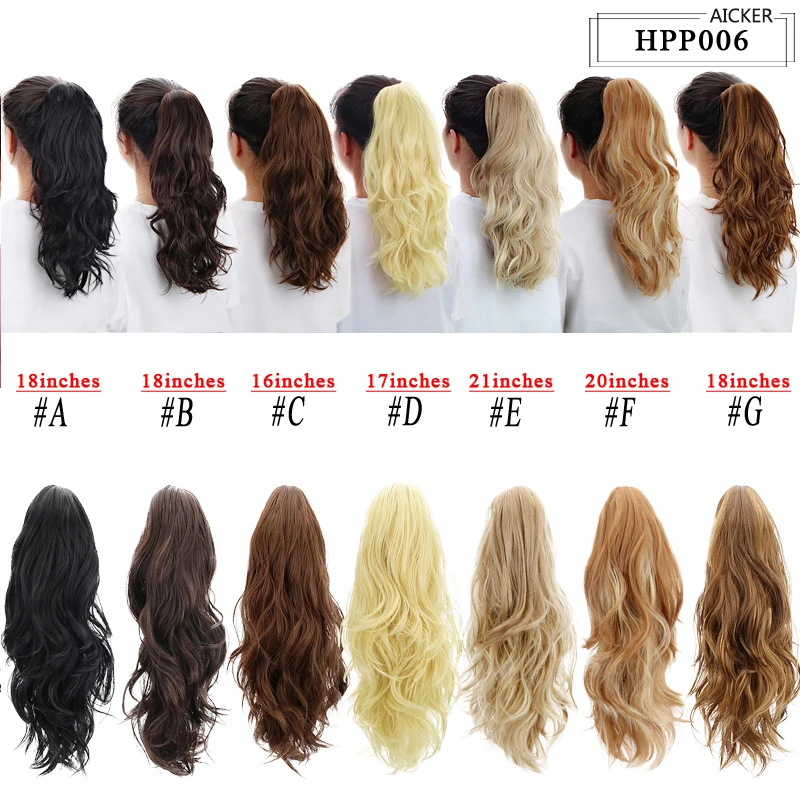 Накладные волосы AICKER, синтетический удлинитель с зажимом для конского хвоста, длинные волнистые светлые челюсти, удлинение конского хвоста, накидка на шнурок, 18 дюймов