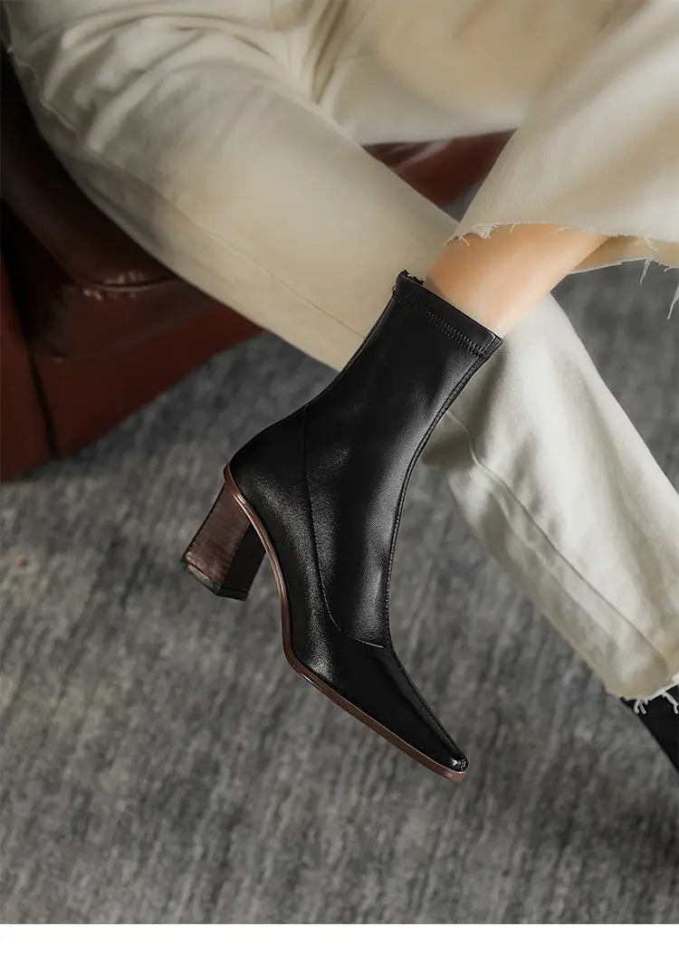Женские сапоги из кожи и вельвета, тонкие сапоги стрейч, зимние короткие сапоги на толстом каблуке, с квадратным носком, на молнии сзади, 2021