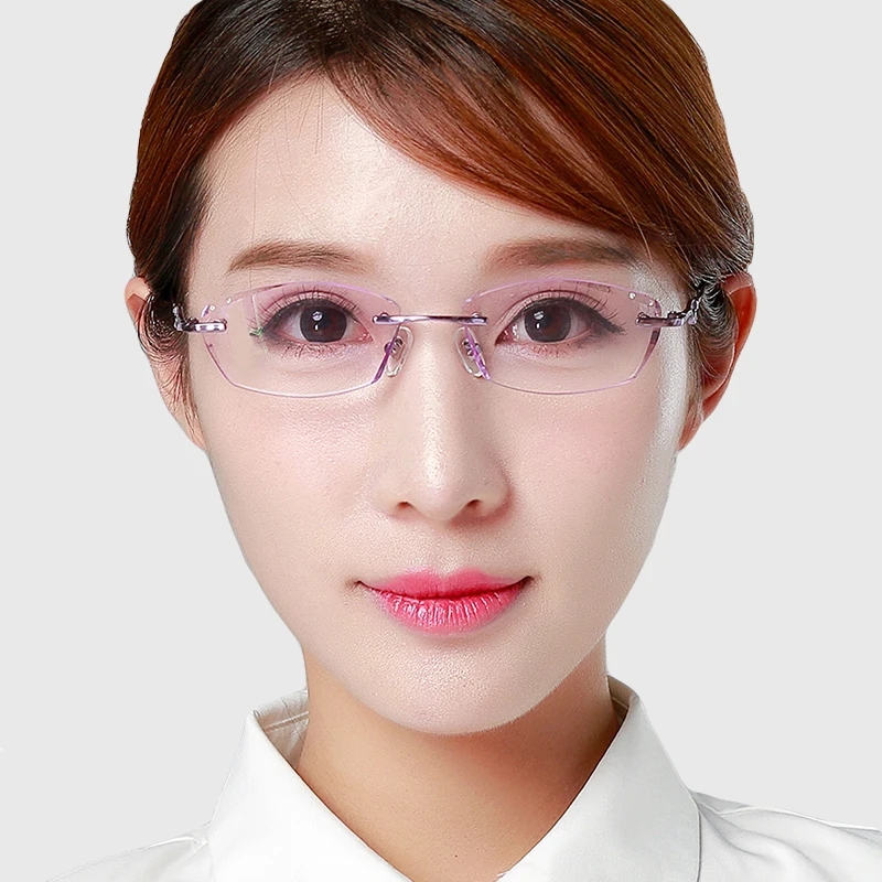 Титан анти голубой светильник очки без оправы для женщин Близорукос...