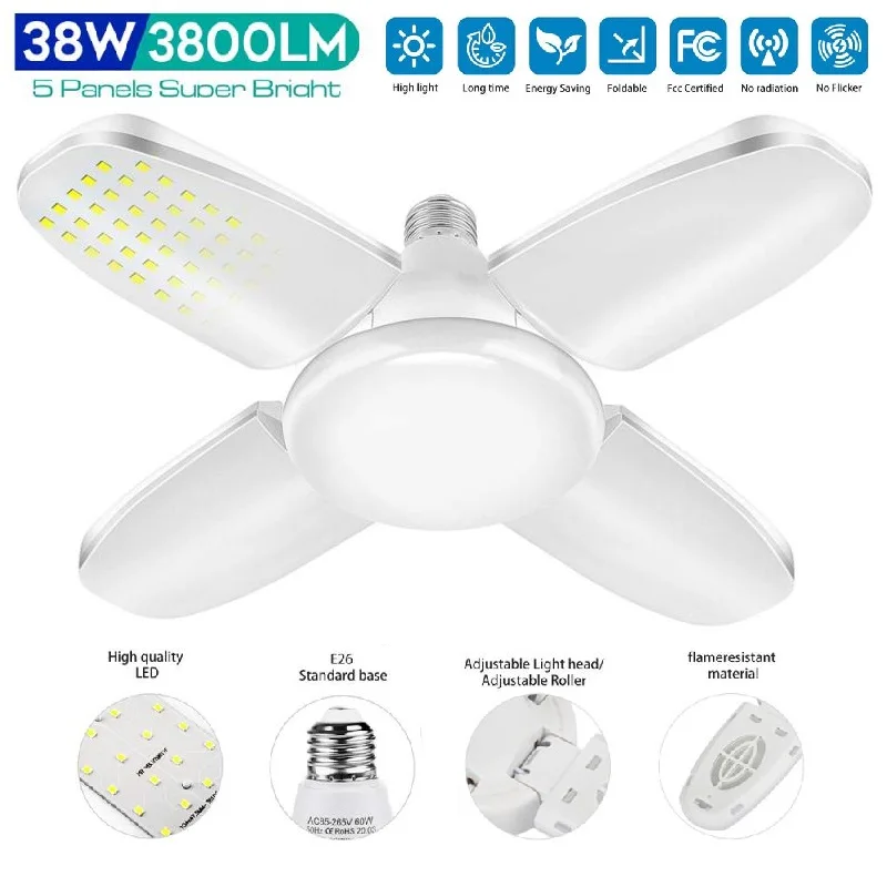 Светодиодный светильник для гаража E27, лампа 38 Вт, складной светильник с лопастями вентилятора, деформируемый Регулируемый потолочный светильник для гостиной, гаража
