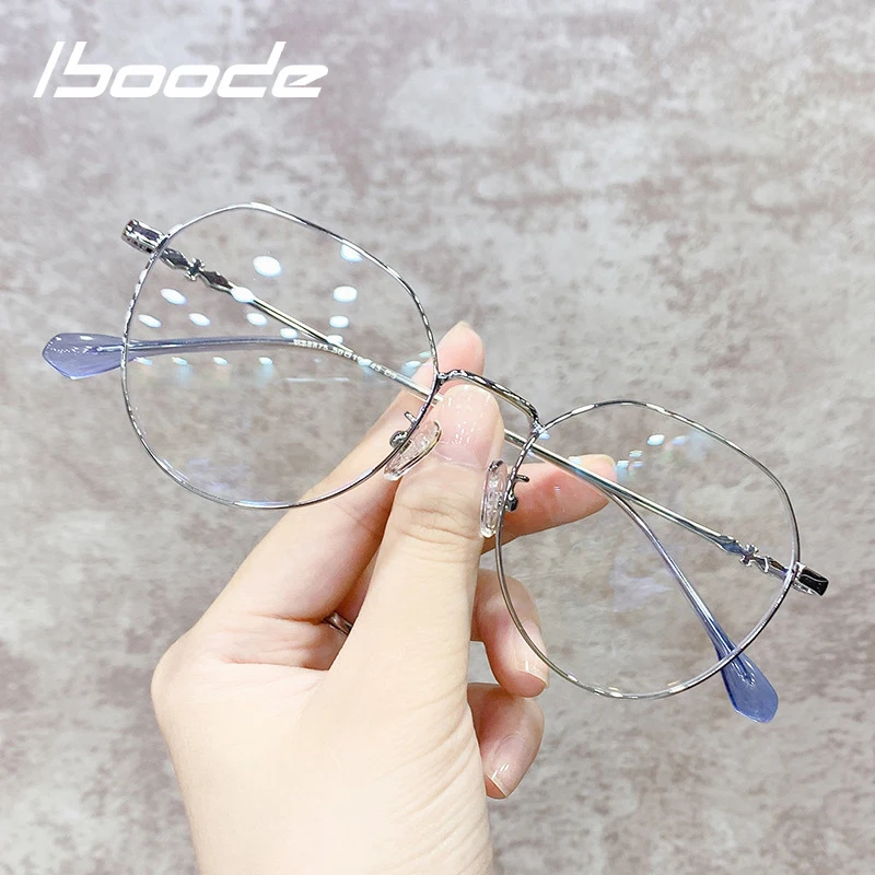 Очки iboode в металлической оправе с защитой от сисветильник для взрослых, круглые очки неправильной формы для близорукости, прозрачные оправы для очков в стиле унисекс с защитой от капель воды
