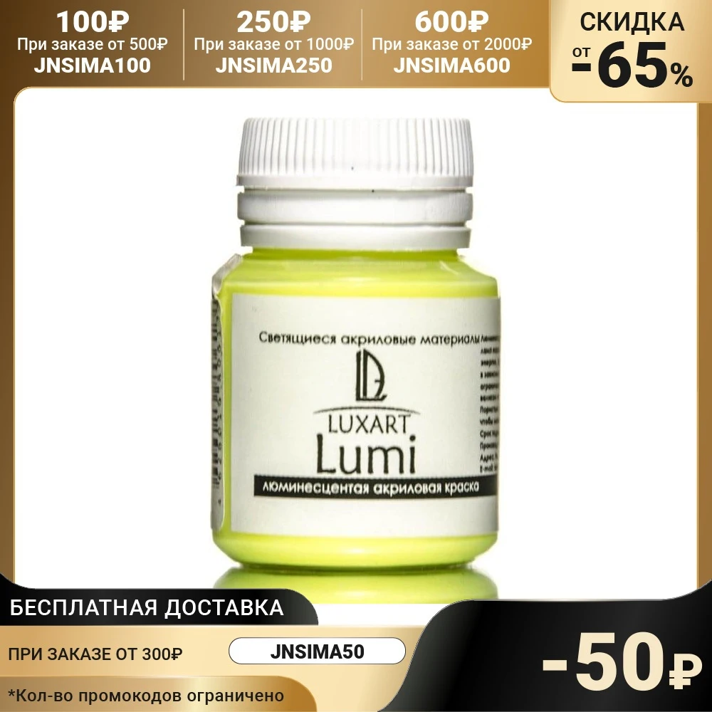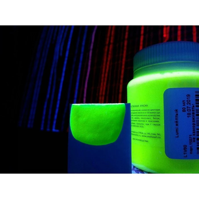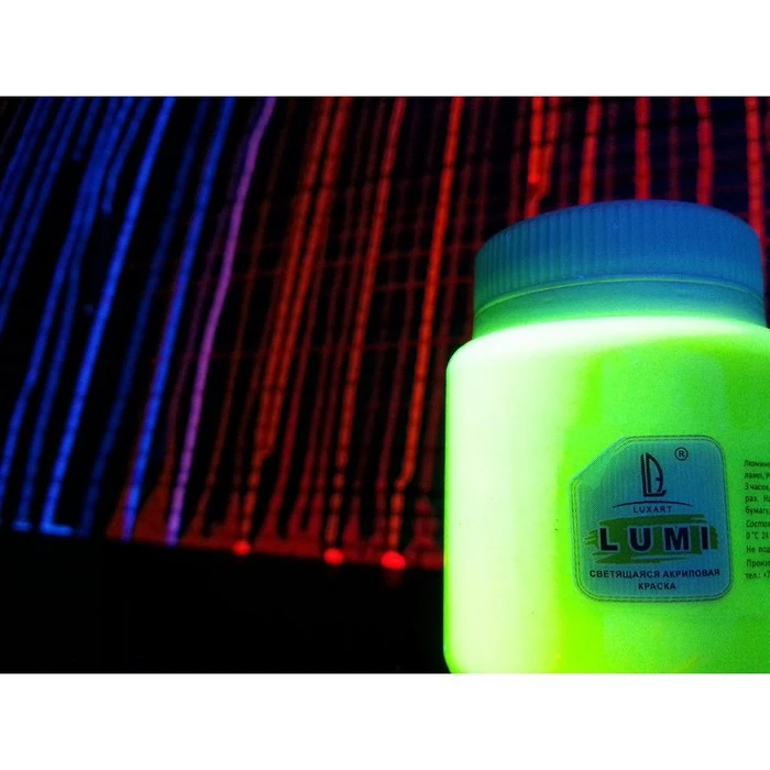 Краска акриловая люминесцентная, 20 мл LUXART Lumi жёлтая, небесно-голубое свечение