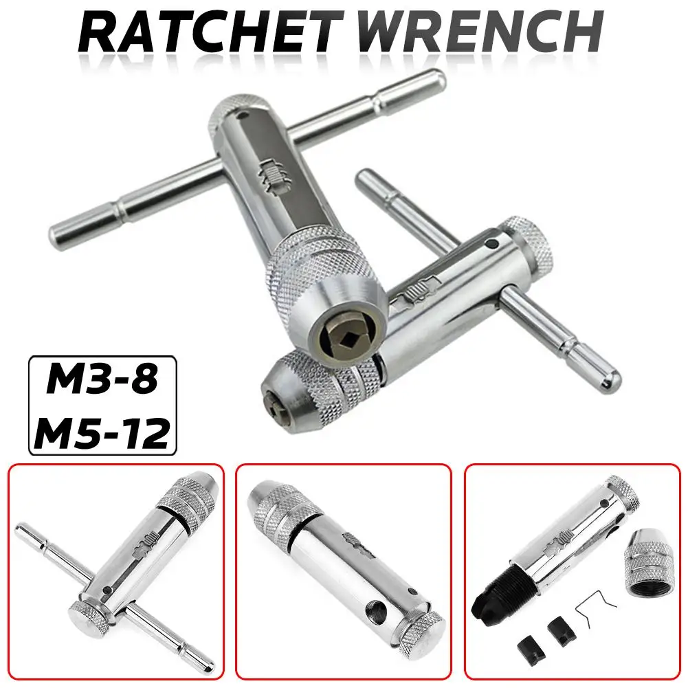 Ключ-Трещотка HS Tools M3-8M 5-12, Т-образный держатель для гаечных ключей, Метрическая имперская резьба, болт, винт, Метчик