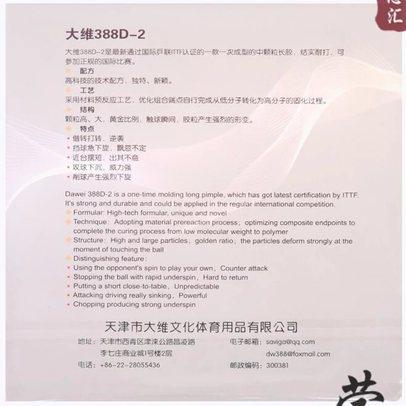 Оригинальный Давэй 388D-2 настольным теннисом резиновая длинные от угревой сыпи от атаки для ракетка для настольного тенниса игры