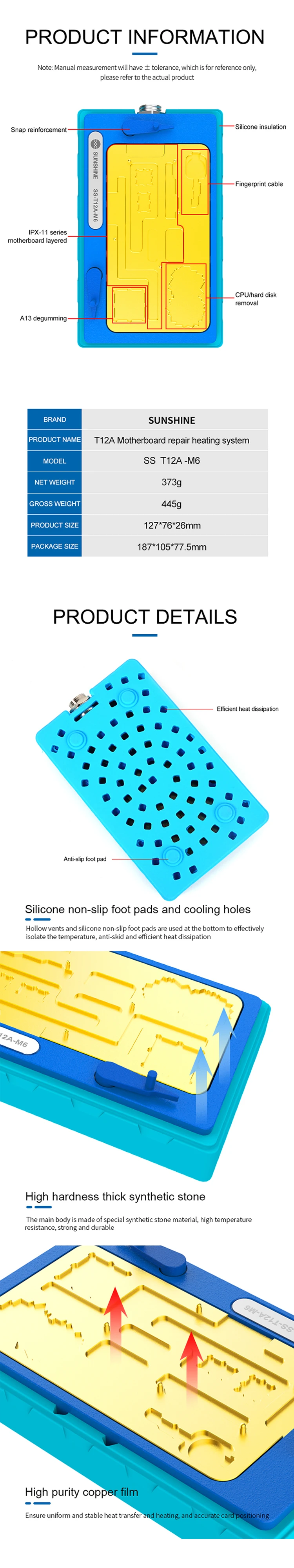 SS-T12A отключающая нагревательная станция для iPhone X XS XR 11Pro Max материнская плата CPU IC чипы Многослойные клеевые Инструменты для ремонта телефона