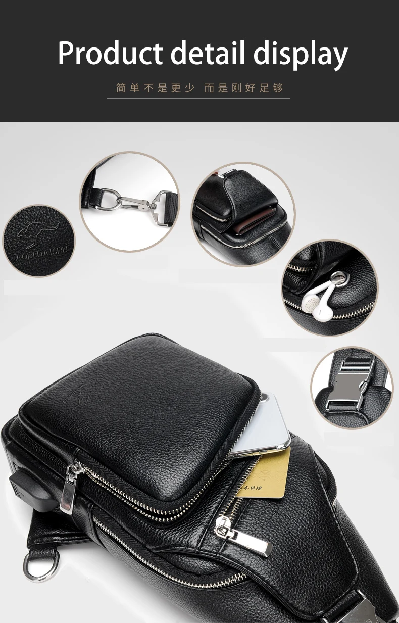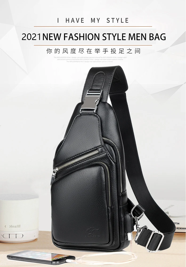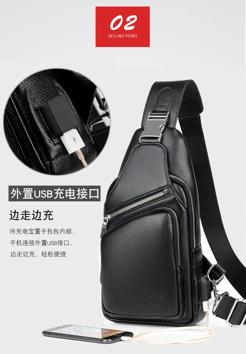 2021 Jackkevin модная мужская сумка через плечо с защитой от краж, черная кожаная мужская нагрудная сумка с USB-зарядкой, сумка через плечо для путешествий