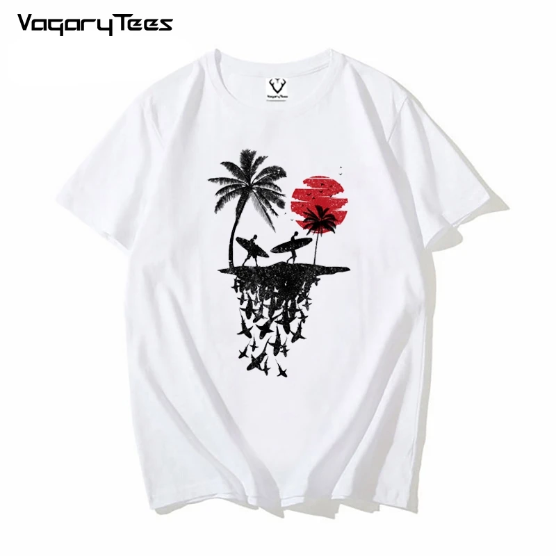 Летняя футболка VagaryTees с принтом на острове серфинга в стиле Харадзюку, дизайнерская футболка в стиле Харадзюку, уличная одежда унисекс, футболка в стиле хип-хоп