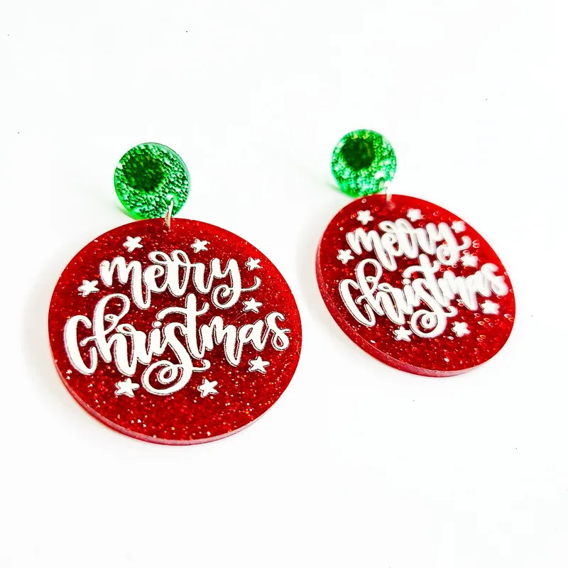 Удивительная к Рождеству с изображением акриловые серьги для женщин простой английские буквы Блестящий большой геометрической формы Длинные висячие серьги