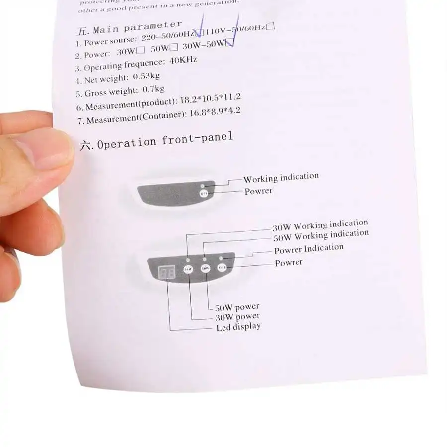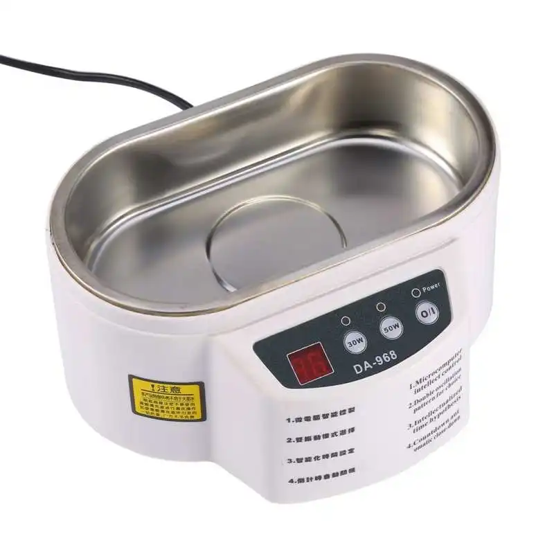 Совершенно новый и высококачественный Мини Ультразвуковой очиститель.0,5 "светодиодный дисплей. Он может очистить все лица предметов, которые контактируют с жидкостью, особенно влияя на предметы, которые имеют сложную форму и больше отверстий. Традиционная ручная или химическая чистка не приведет к повреждению предметов. Удалите грязь, пыль, жир из самых маленьких мест с помощью ультразвуковой технологии. Подходит для очистки ювелирных изделий, очков, печатных плат, орнаментов, головных уборов, брошек, ручек, CD, зубных щеток, молочных бутылок, фруктов, часов, точных инструментов и т. д. Спецификация: Напряжение: 220 В. Мощность: 30 Вт/50 Вт выбирается. Емкость: 600 мл. Вес нетто: 0,59 кг. Рабочая частота: 40 кГц. Размеры: 18,5 см x 14,5 см x 10 см. Ванна, длинна по стельке: 16,5*8,5 см Ванны: материал подошвы: полиуретан толщина 3,9 см Время: 1-60 минут можно отрегулировать (30 Вт); 1-30 минут можно отрегулировать (50 Вт). Посылка включает в себя: 1 x ультразвуковой очиститель