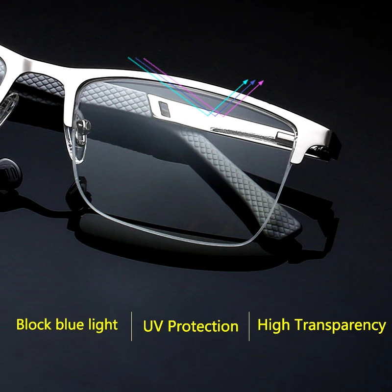 Мужские очки для чтения в полуободковой оправе, с защитой от ультрафиолетовых лучей, с защитой от сисветильник лучения, в металлической оправе, серебро 1,5, 2,5