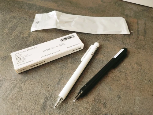 Материал отличается от цветных ручек Kaco, на мой взгляд он хуже. Цветные ручки на ощупь приятнее. Но в остальном симпатичная ручка с синим цветом, для работы самое оно