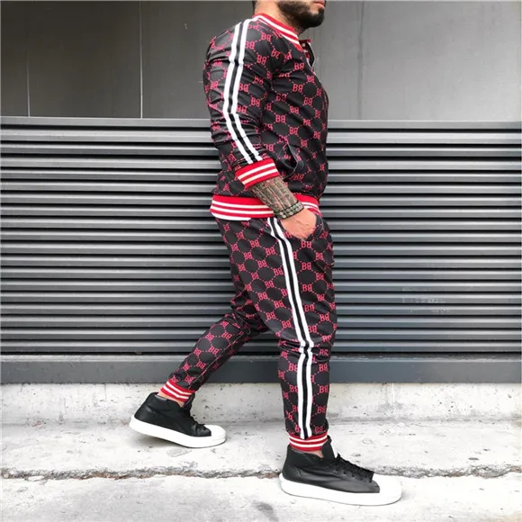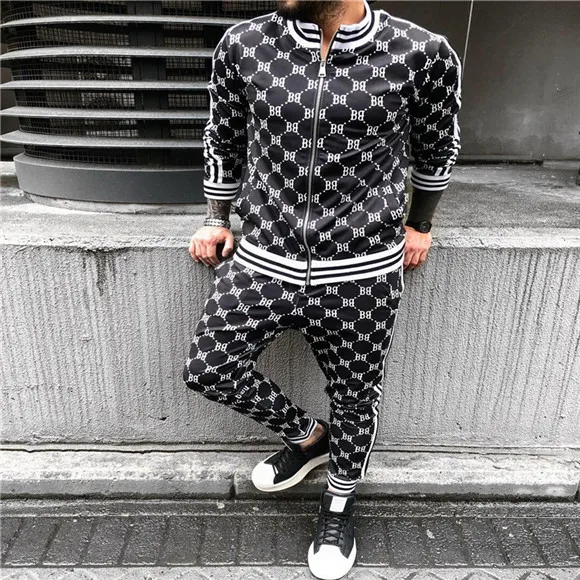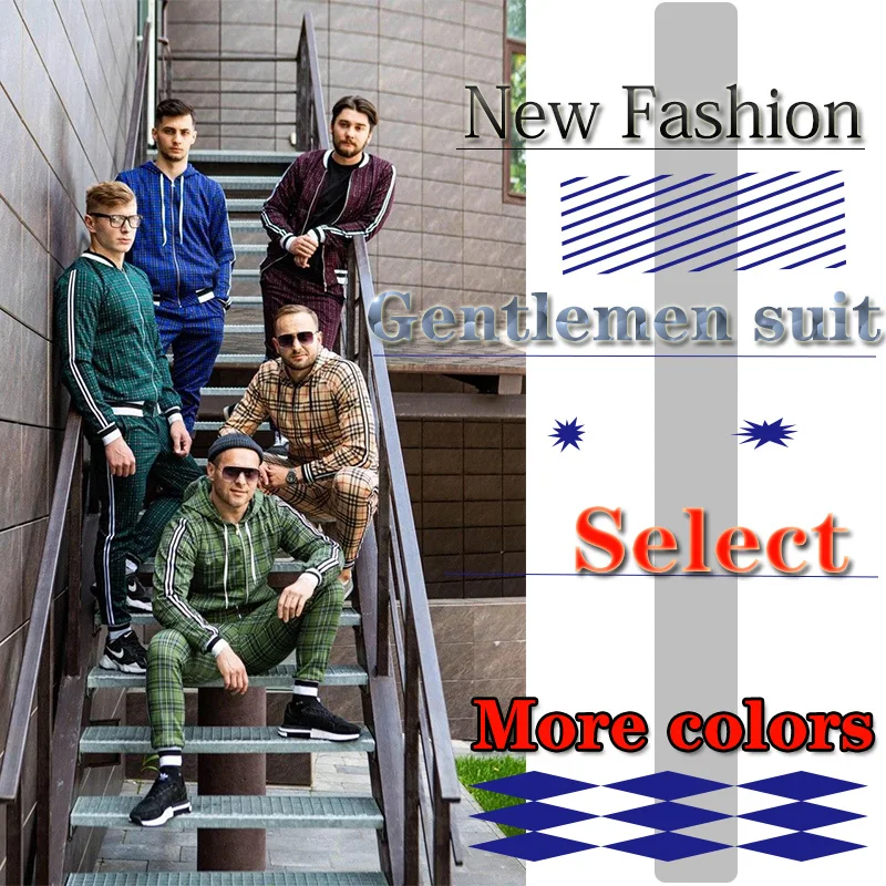 Спортивный костюм мужской с 3D-принтом в клетку, Повседневные набор застежек на молнии спортивные штаны со множеством карманов, модные комплекты уличных курток, 2021