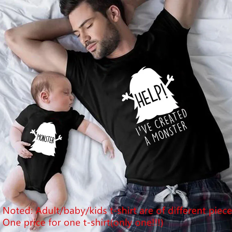 Забавный папа и ребенок 2022 семейная одежда с принтом черная хлопк...