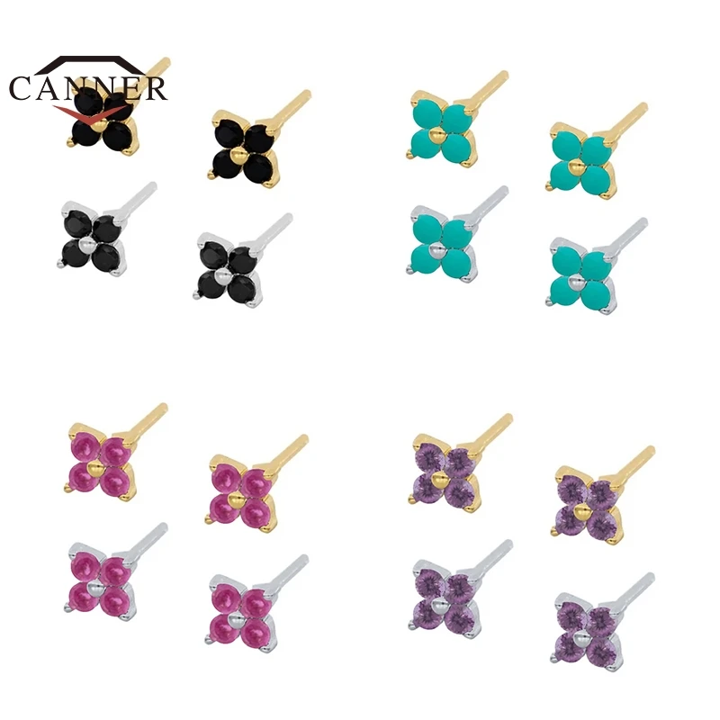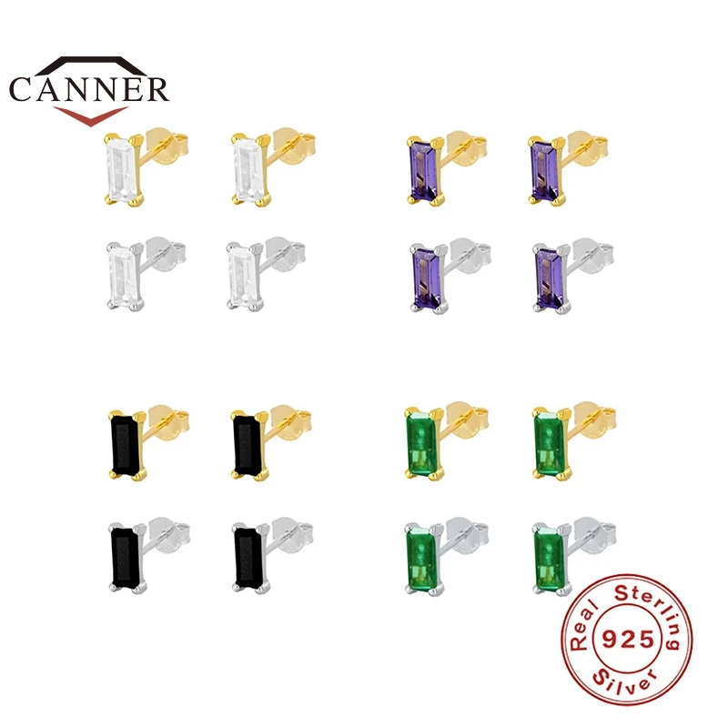 Женские серьги-гвоздики CANNER, серьги из стерлингового серебра 925 пробы с квадратным кубическим цирконием, ювелирные украшения для пирсинга
