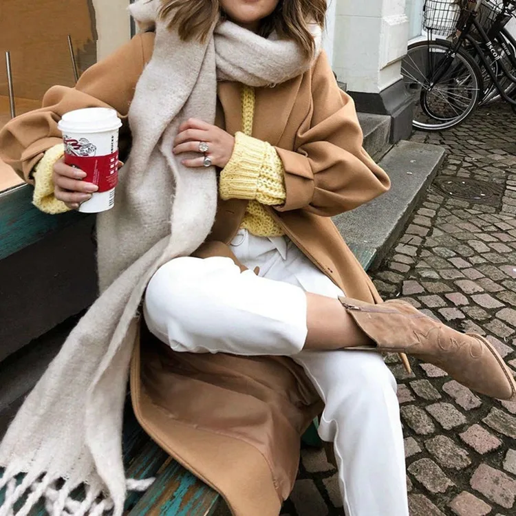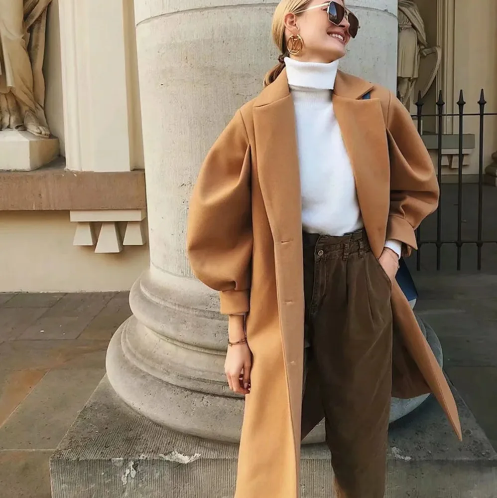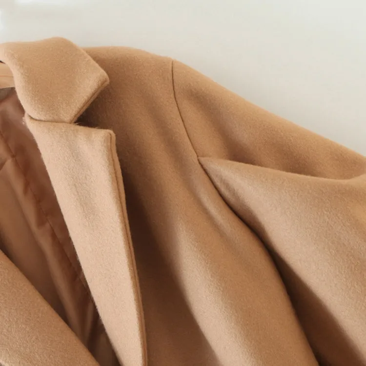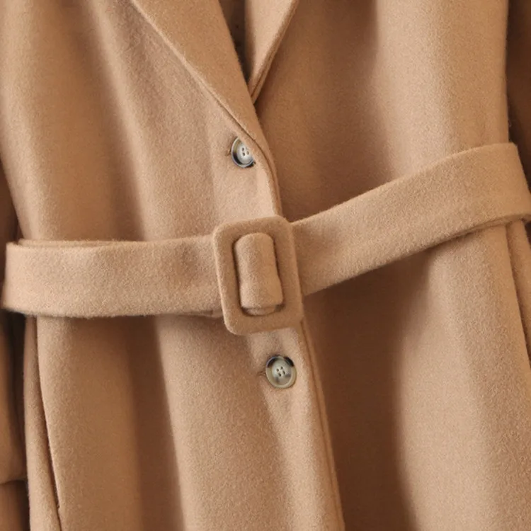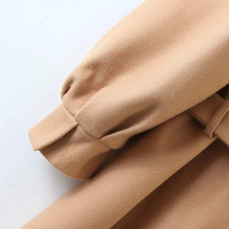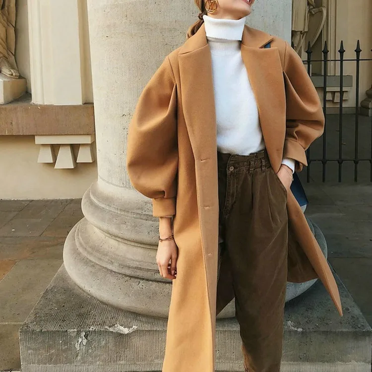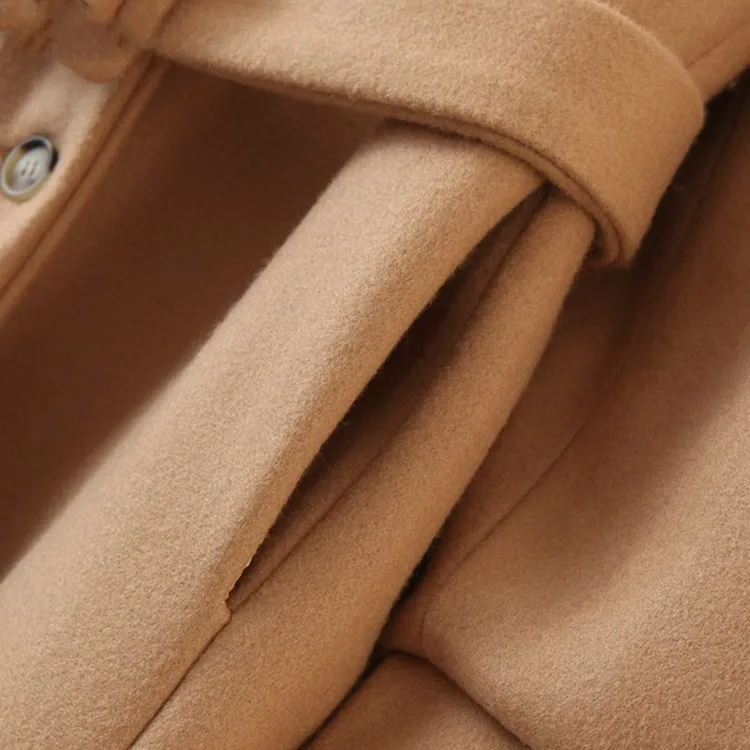 Женское шерстяное пальто цвета хаки, элегантное теплое плотное пальто с вырезом-лодочкой и длинными рукавами-фонариками, Женское пальто, винтажная одежда с поясом, зима 2021
