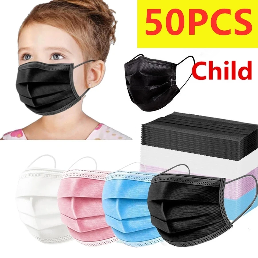 50 шт., одноразовые маски для детей и взрослых, 3 слоя