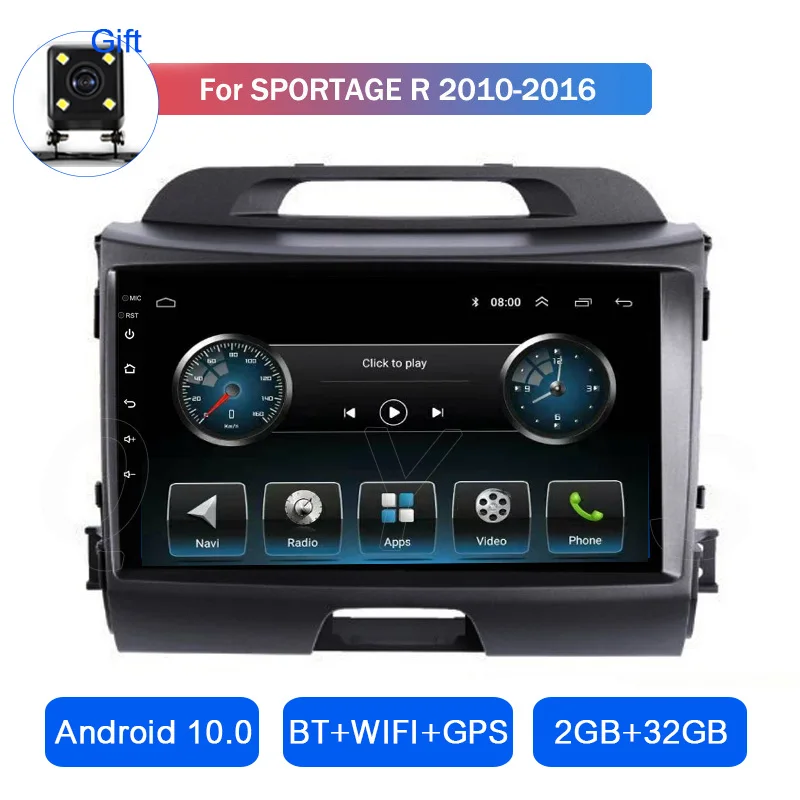 Android 10, головное устройство с сенсорным экраном, четырехъядерным процессором для Kia Sportage 2010, 2011, 2012, 2013, 2014, 2015, 2016, GPS, большой экран, навигация
