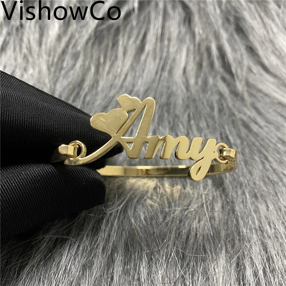 Браслет с именем на заказ VishowCo, из нержавеющей стали, под розов...
