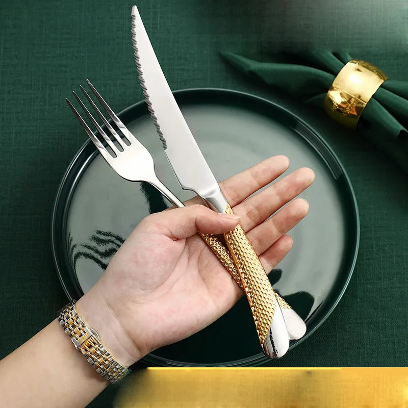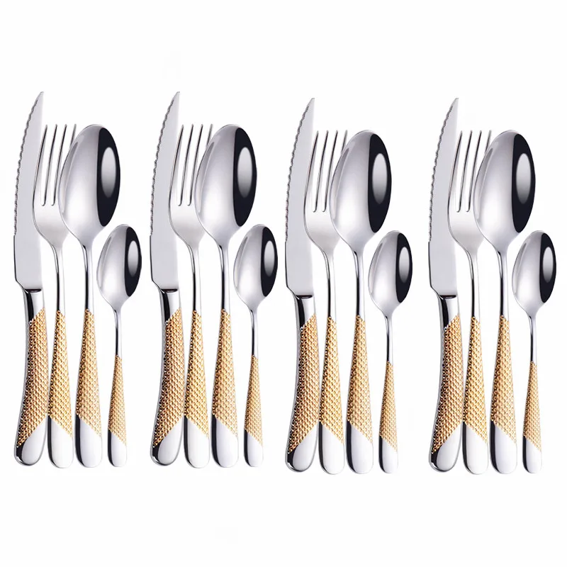 Набор золотых столовых приборов, 16 шт., набор столовых приборов из нержавеющей стали 1810, набор столовых приборов, нож, вилка, ложка, набор столовых приборов, можно мыть в посудомоечной машине