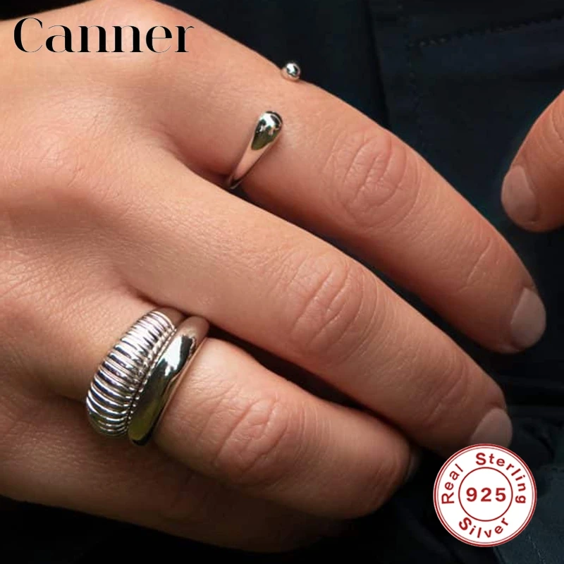 Женское кольцо на палец Canner, регулируемое кольцо из стерлингового серебра 925 пробы, минималистичное гладкое кольцо с закручиванием, ювелирные украшения, Bague femme anillos W5