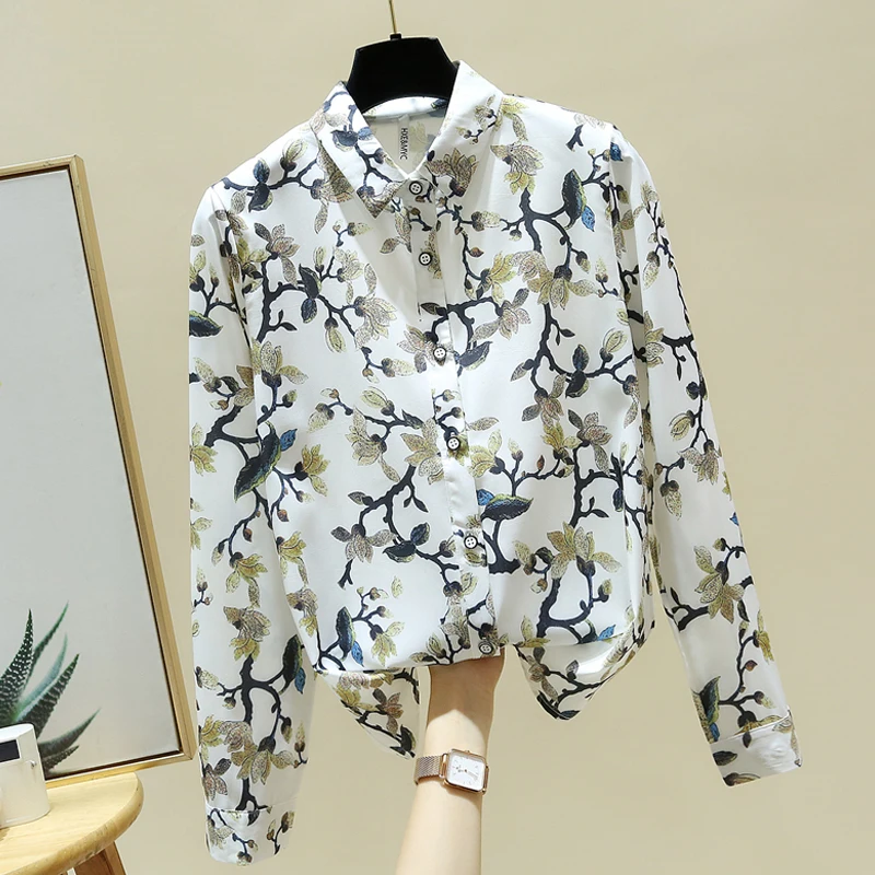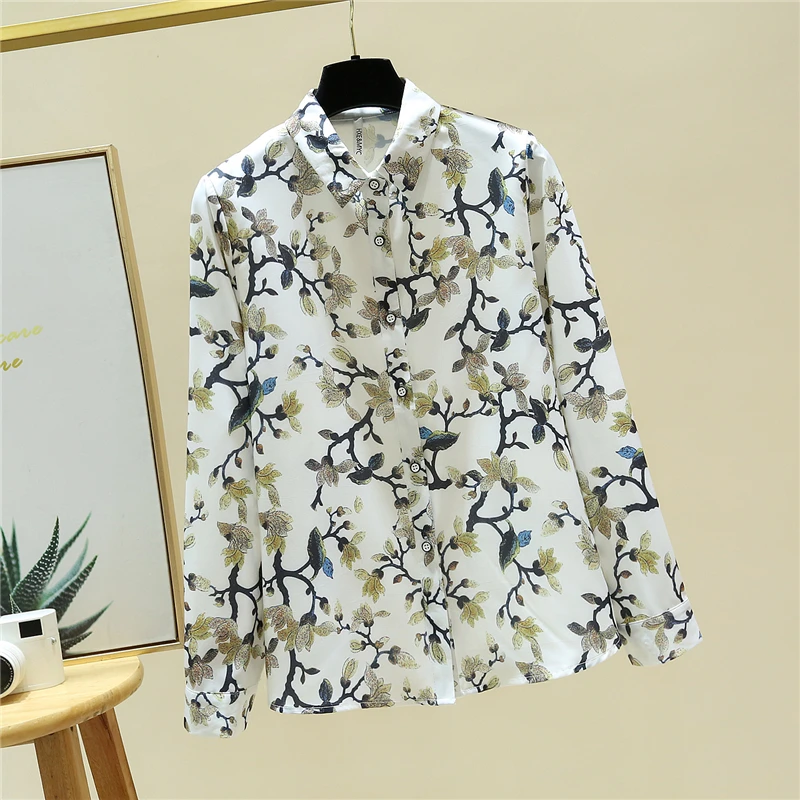 Блузка женская шифоновая с длинным рукавом и отложным воротником, E39
