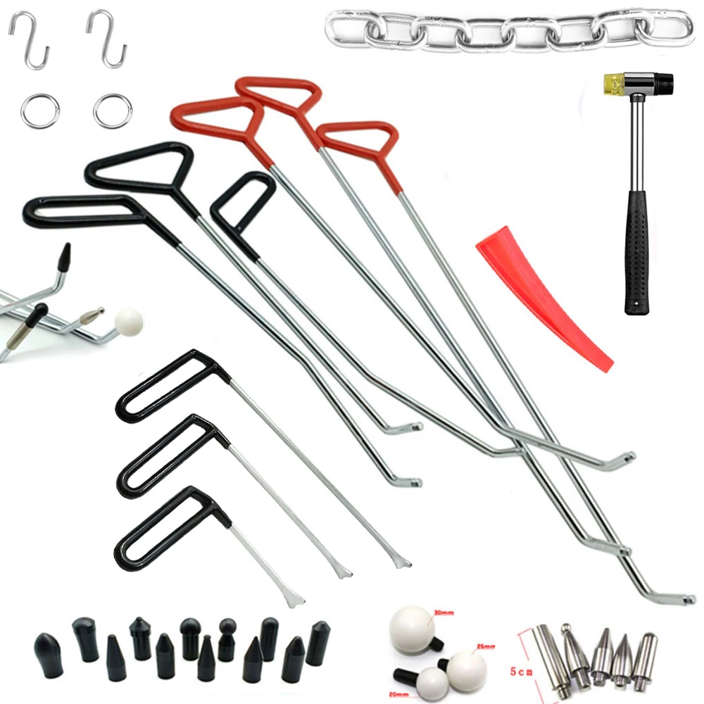 Набор инструментов из нержавеющей стали для ремонта вмятин без покраски с конусной головкой и S-образным крючком для удаления вмятин на кузове автомобиля от града