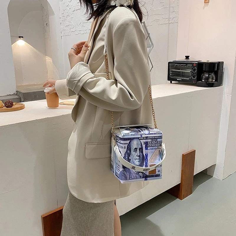 Модные вечерние кошельки, кошелек с принтом доллара, женская сумка через плечо, сумки через плечо