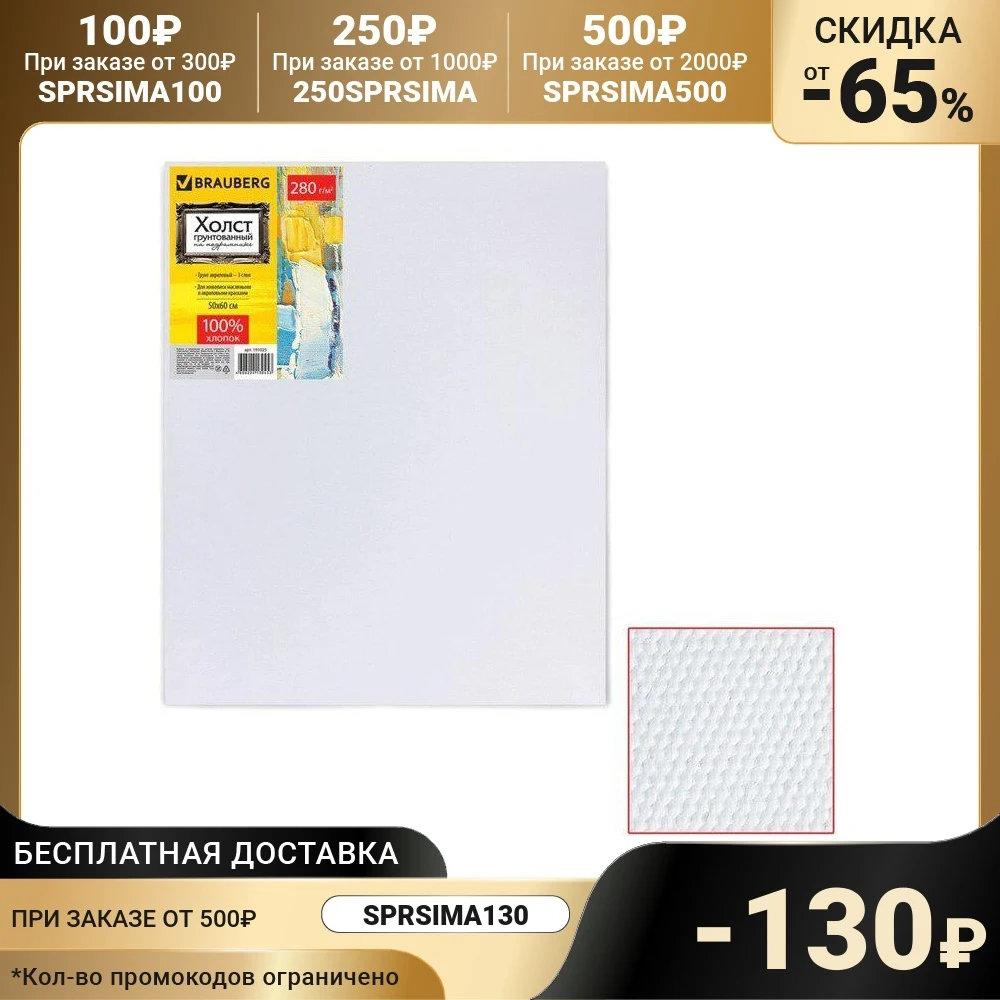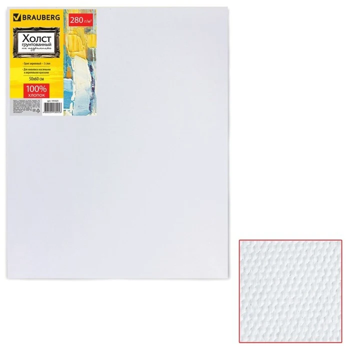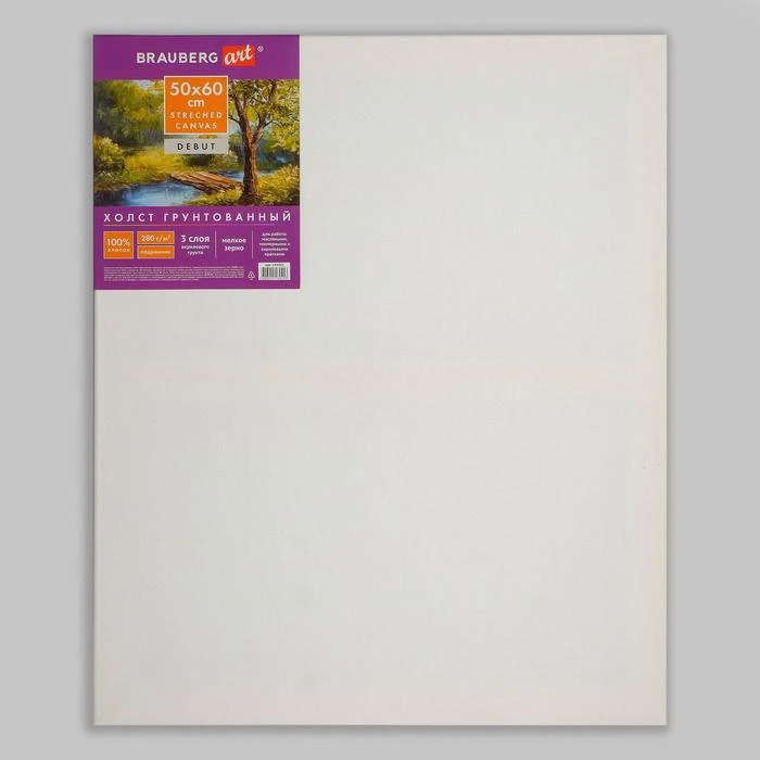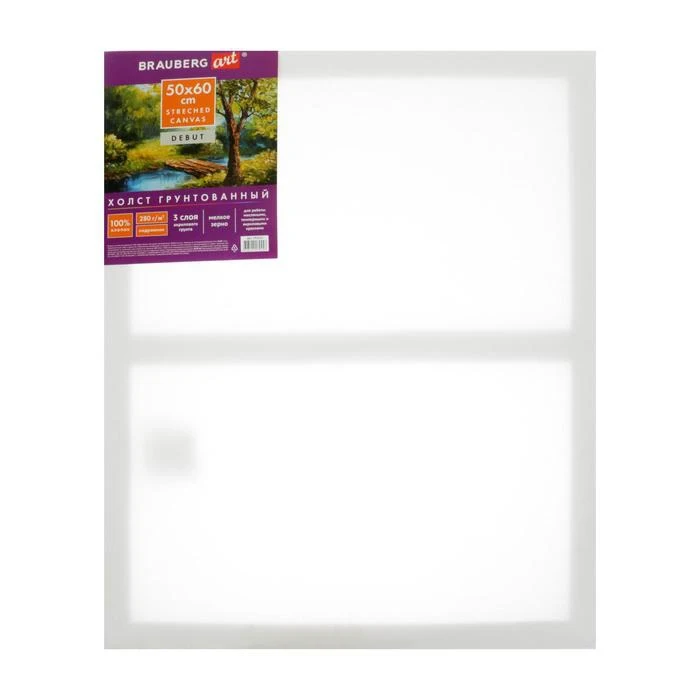 Холст на подрамнике, хлопок 100%, акриловый грунт, 2 х 50 х 60 см, мелкозернистый, 280 гм, Brauberg, ЭКОНОМ