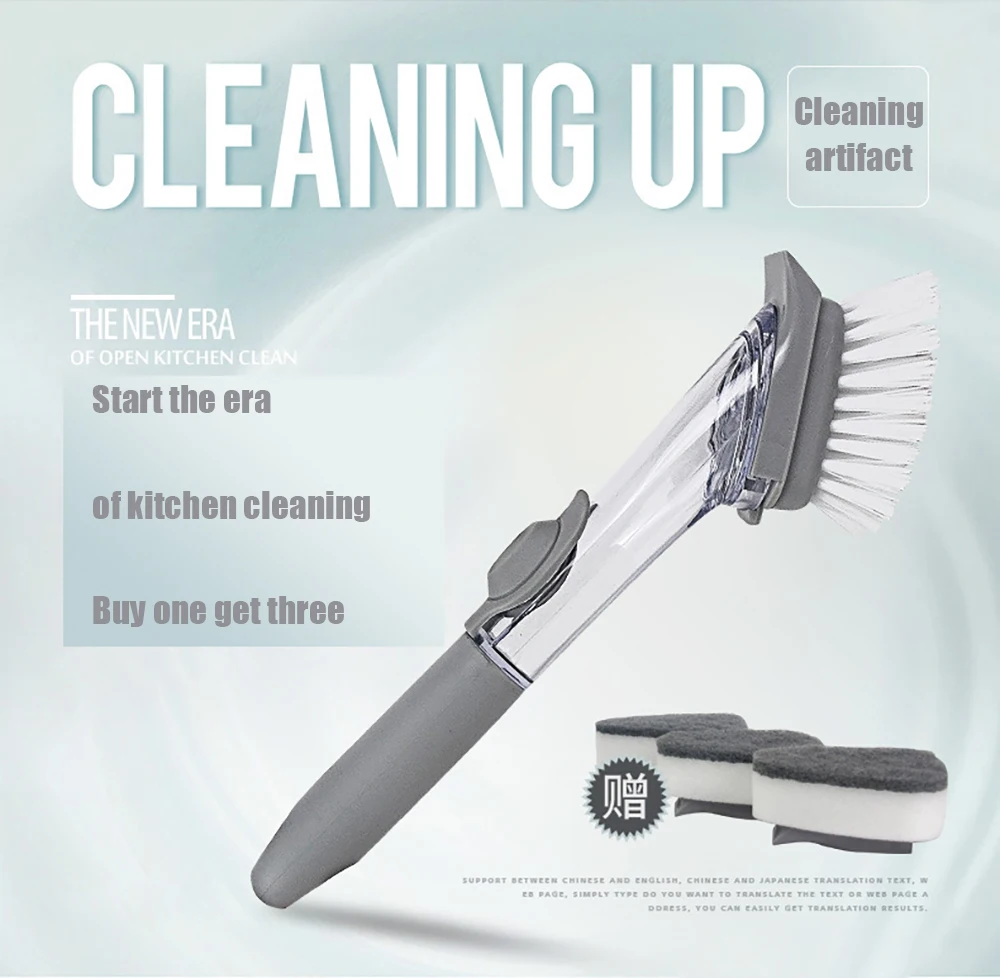 Инструменты для уборки кухни 2 в 1, щетка для чистки с длинной ручкой со съемной щеткой, Диспенсер губки, Набор Щеток Для Мытья Посуды