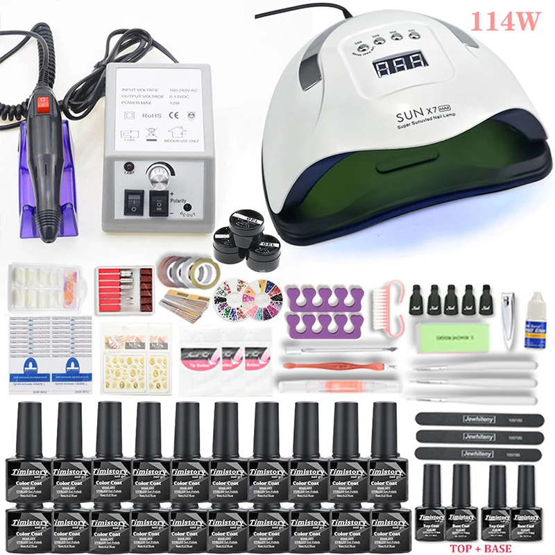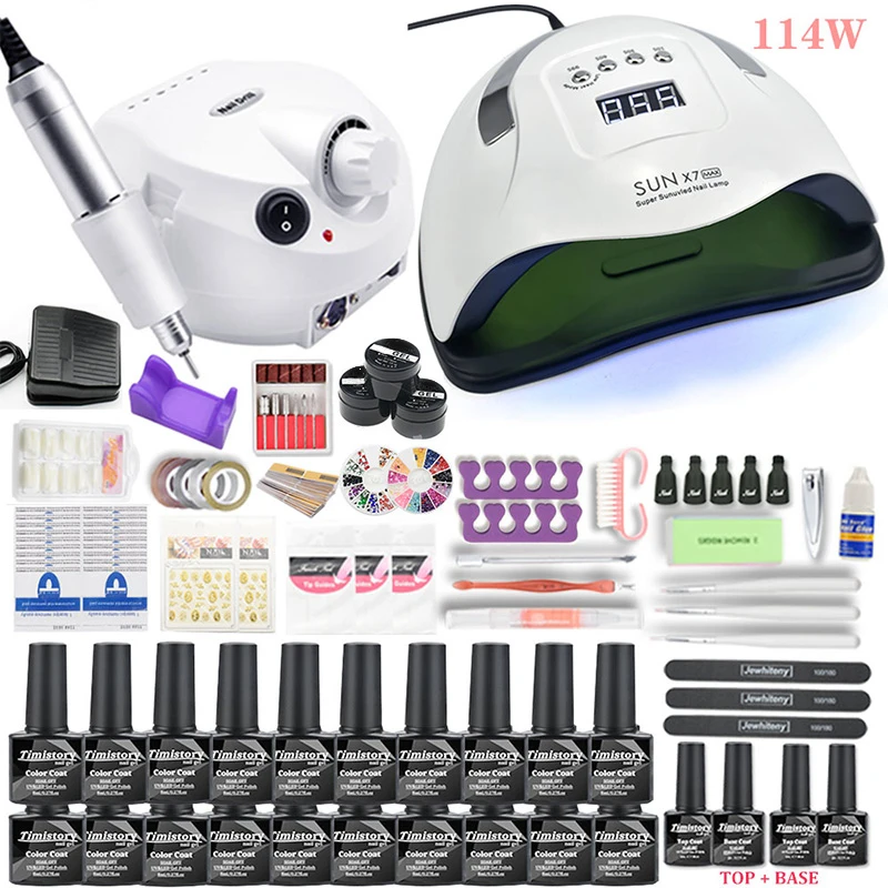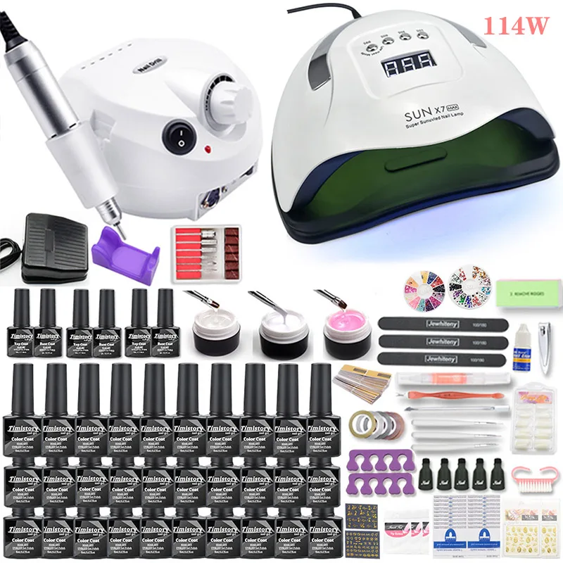 Набор для ногтей набор гель-лаков для ногтей, УФ светодиодный лампа, Электрический маникюр 20000-35000 об.мин., дрель для ногтей, маникюрный набор, инструменты для дизайна ногтей, набор для ногтей