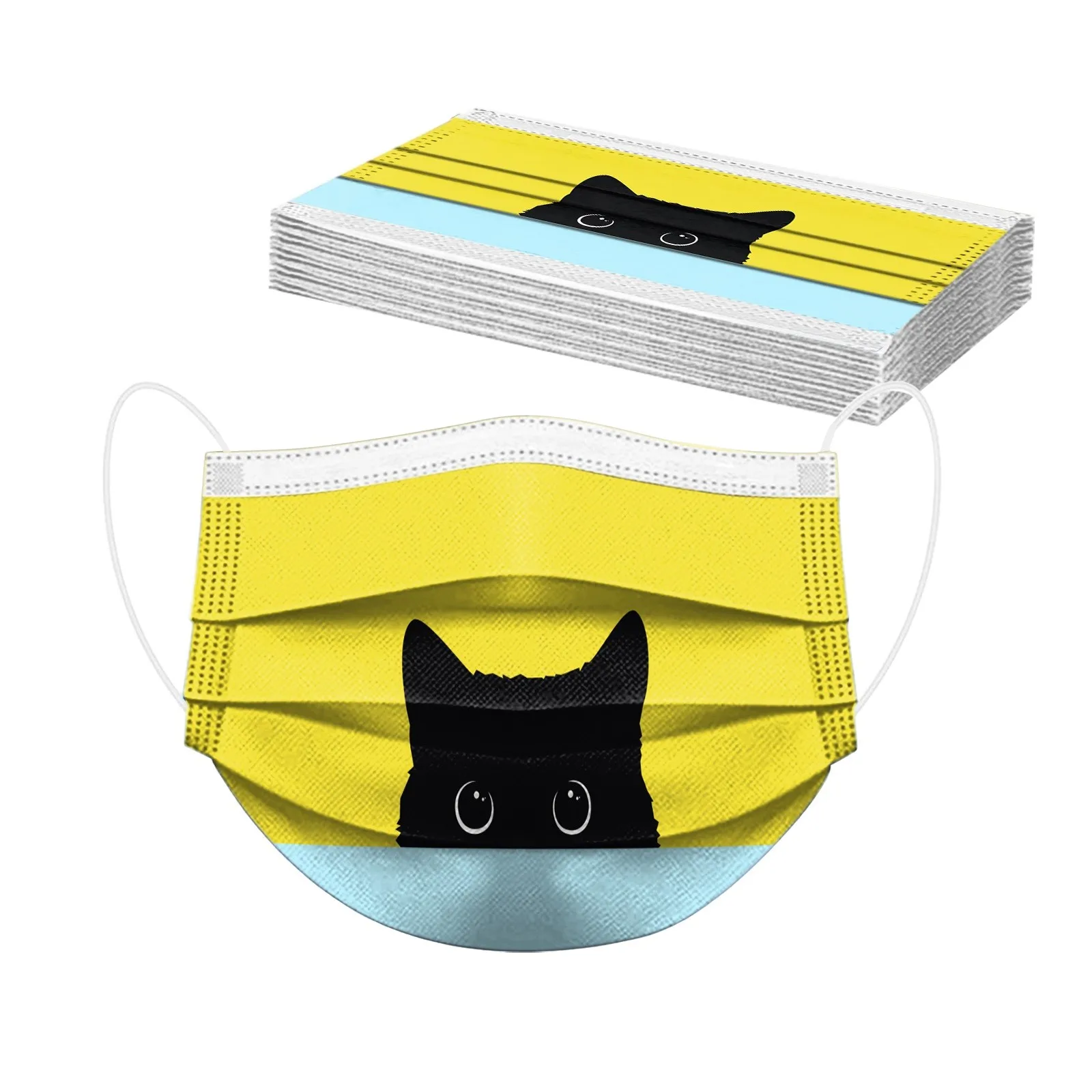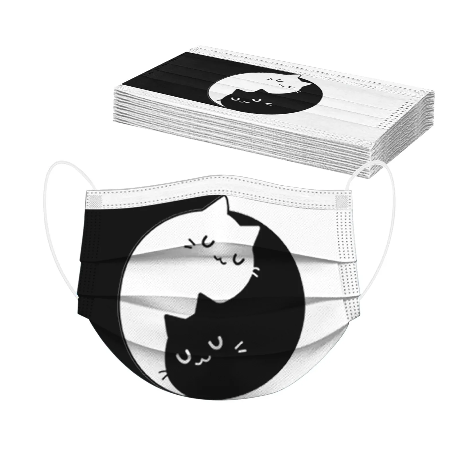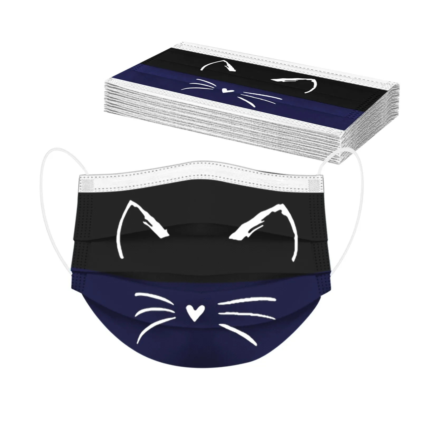 50 шт. многослойная одноразовая дышащая маска для взрослых с принтом кошки