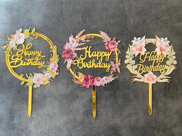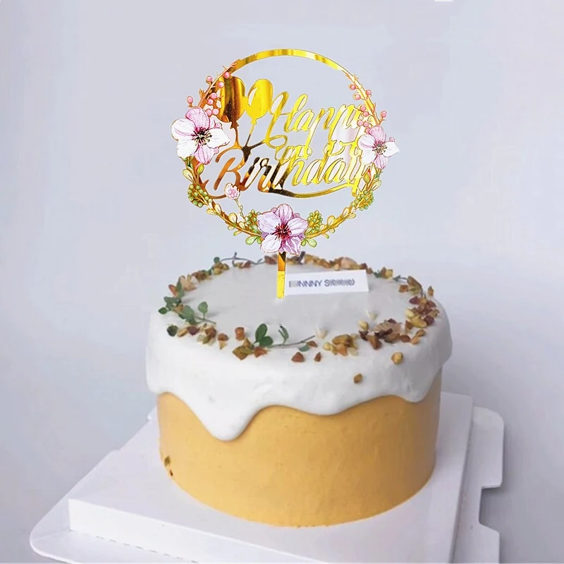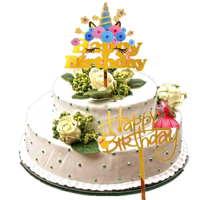 Топперы акриловые для детского дня рождения, топпер для торта С Днем Рождения, золотистые, украшения для тортов