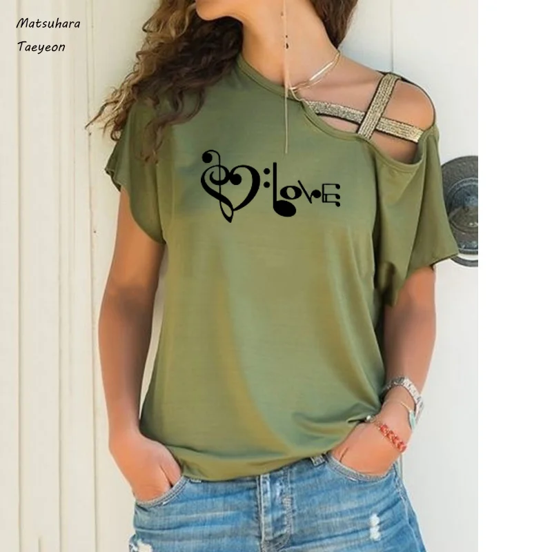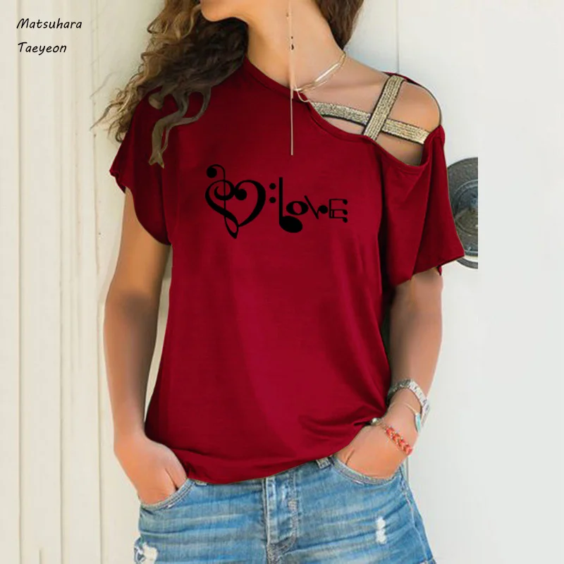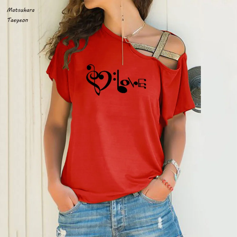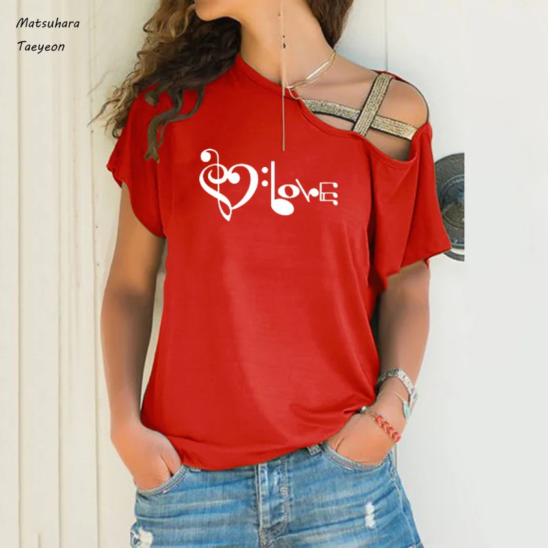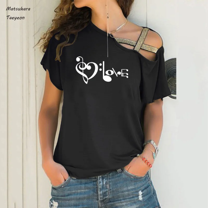 Модные летние топы для женщин, новая забавная футболка с музыкальным принтом Love, Женский Повседневный Топ в стиле Харадзюку, женская одежда
