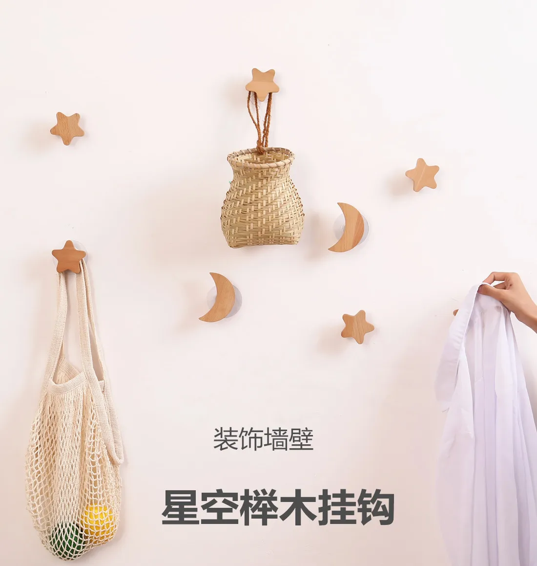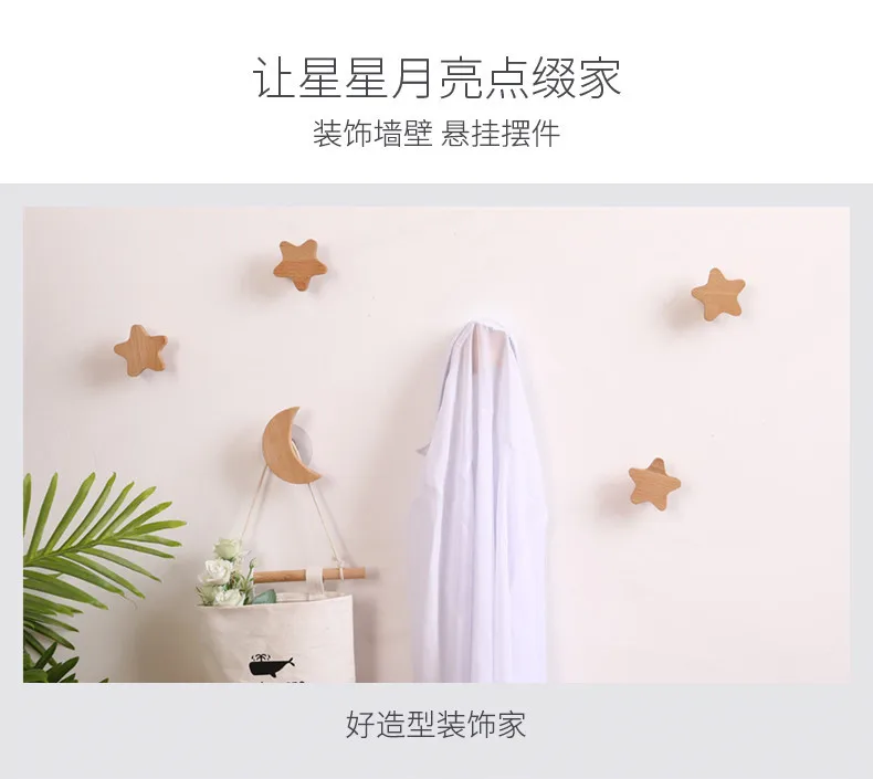 Скандинавский настенный крючок из массива дерева без отверстий на стене крыльца крючок для пальто шляпы Звезда Луна креативный