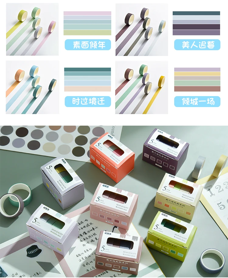 Набор маскирующей Васи-ленты MOHAMM 5 шт.лот Morandi однотонного цв...