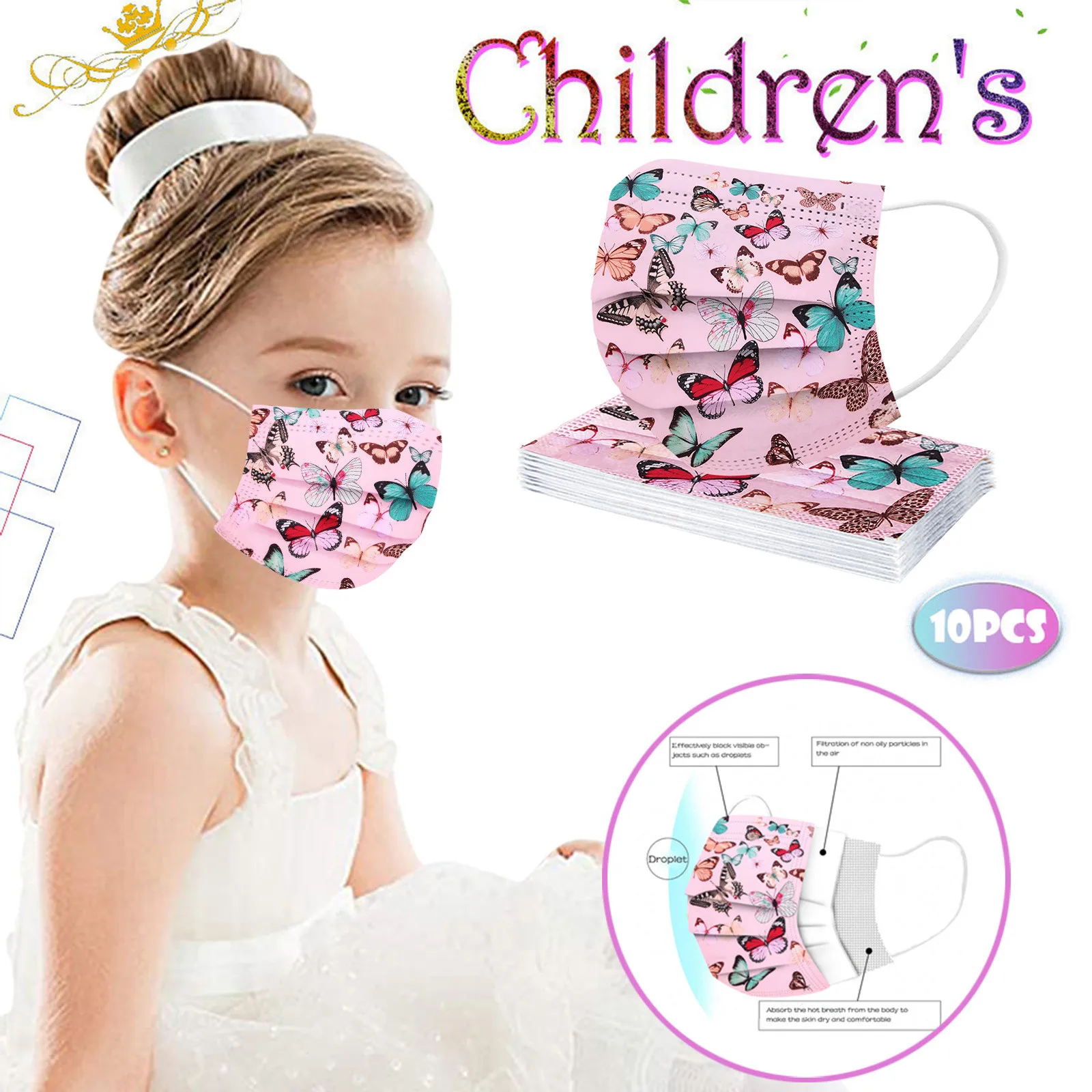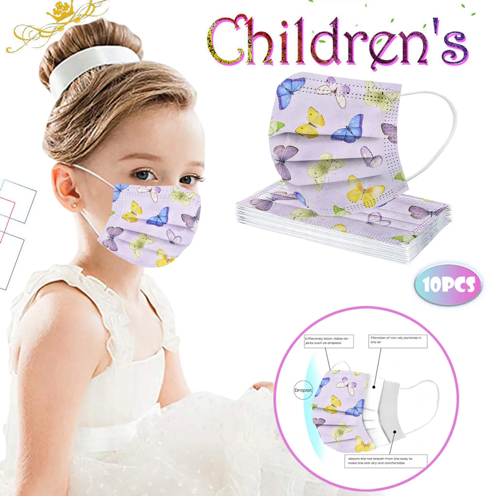 10 шт, детское нижнее белье, бабочка Маска одноразовая защита Маска Enfant Nonwove 3 Слои дышащая Маска для лица Петли Уха Маска Тканевая Mascarilla