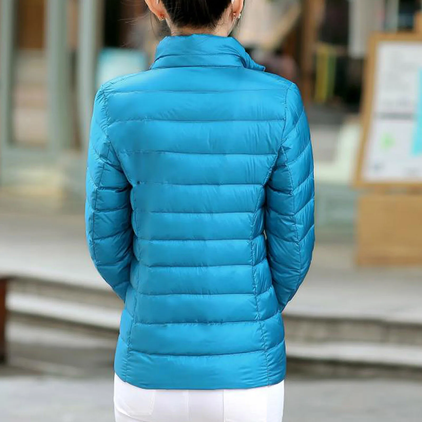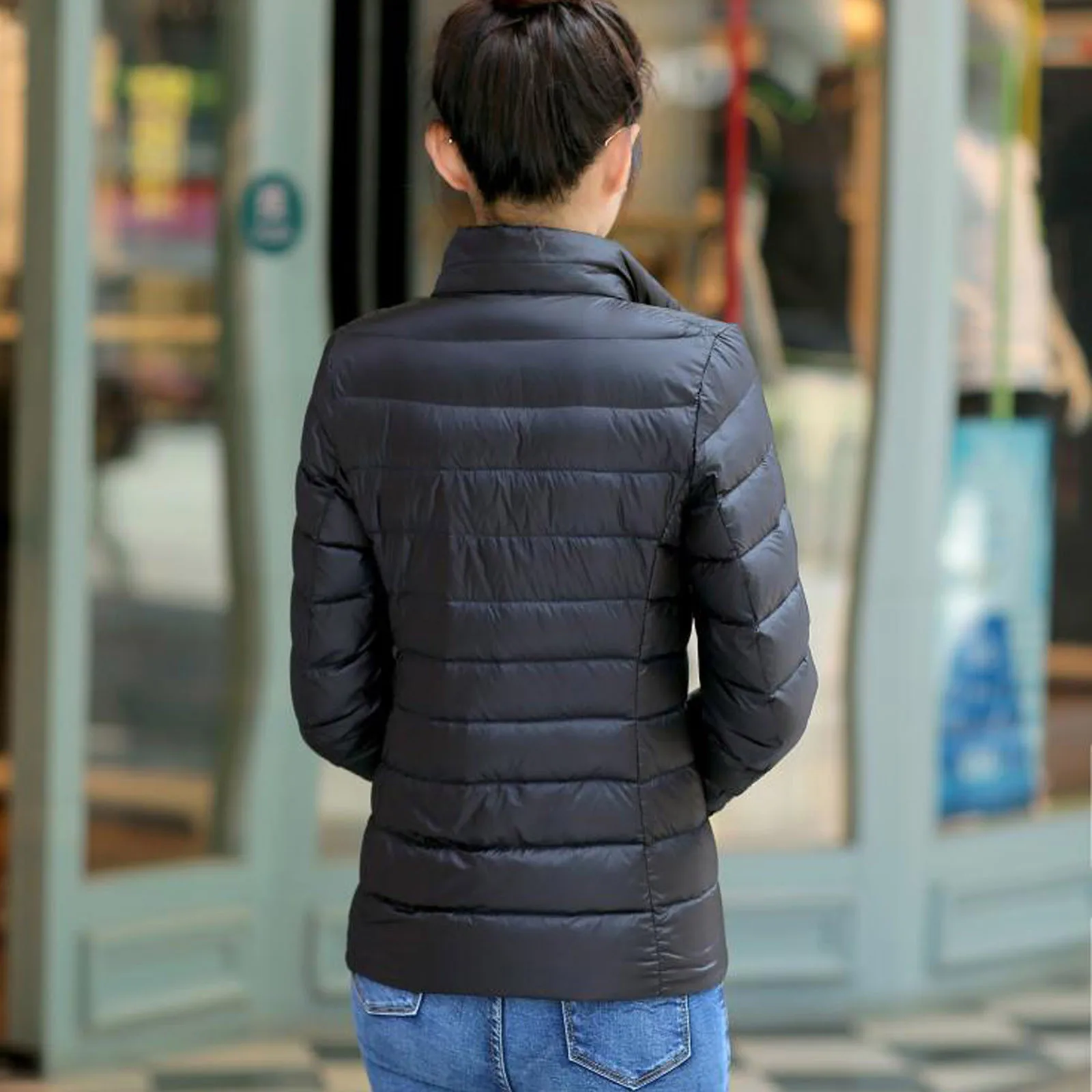 Пуховик женский осенне-зимний, теплый, ультралегкий, на утином пуху, ветрозащитный, однотонный, # f30