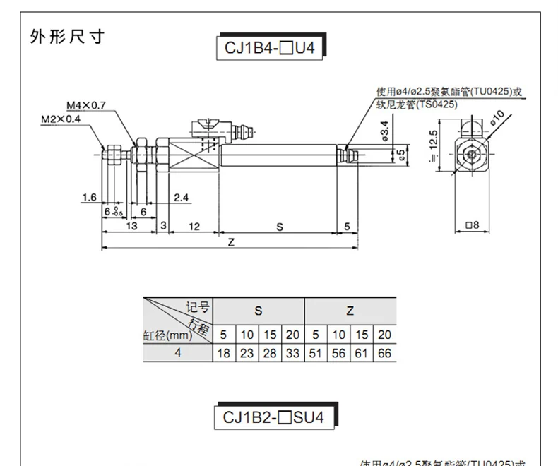 Односторонний мини-цилиндр SMC типа CJ1B для возврата пружины, 100001520 -SU4, пневматический цилиндр с трубкой 4 мм