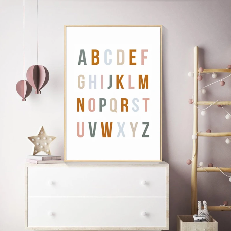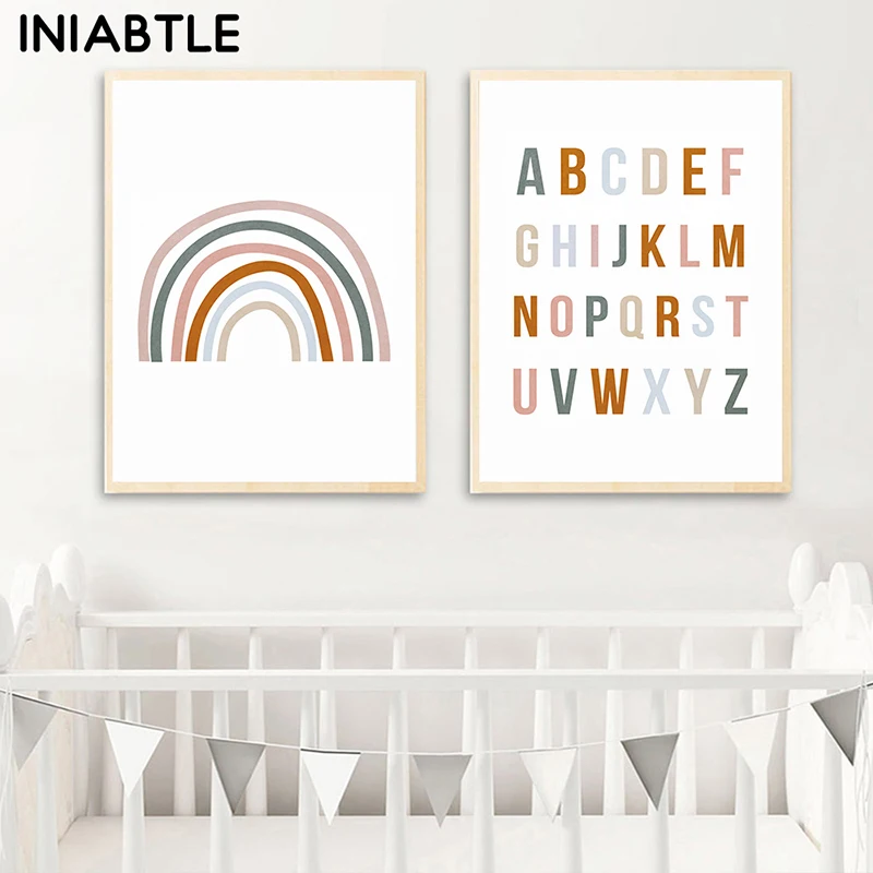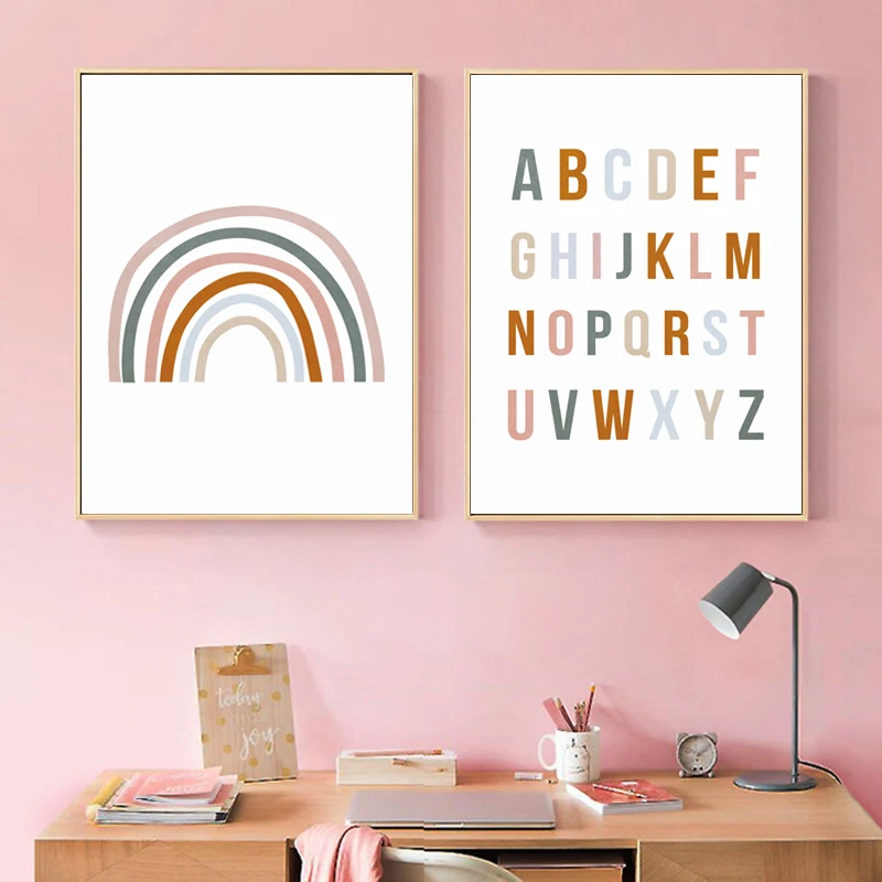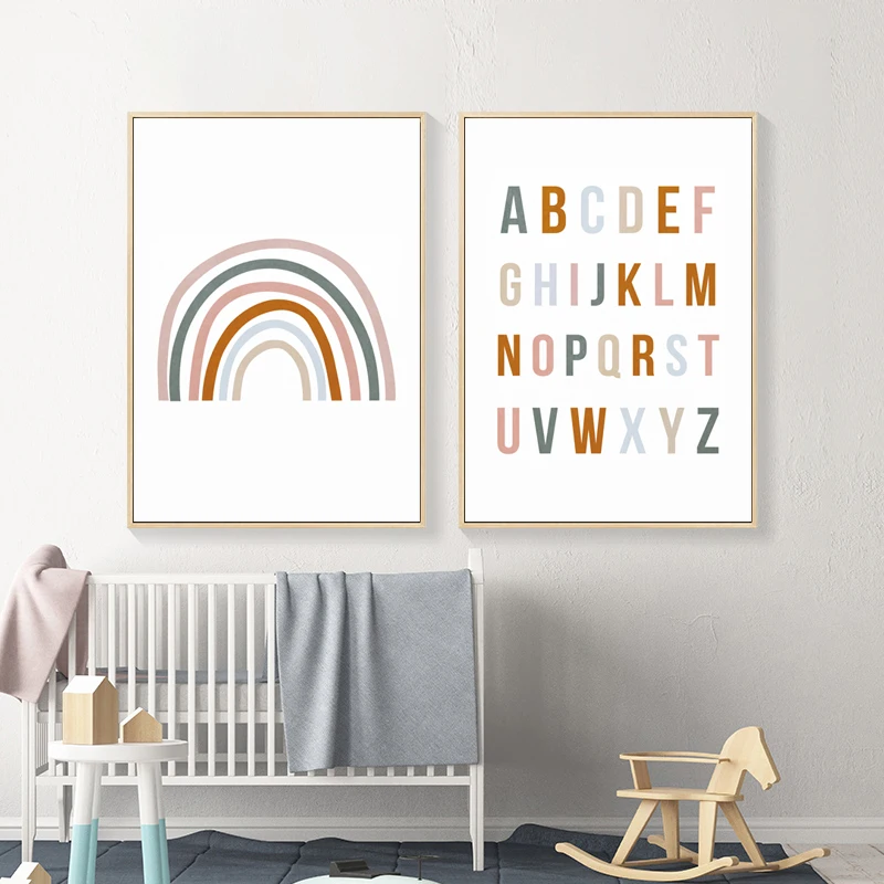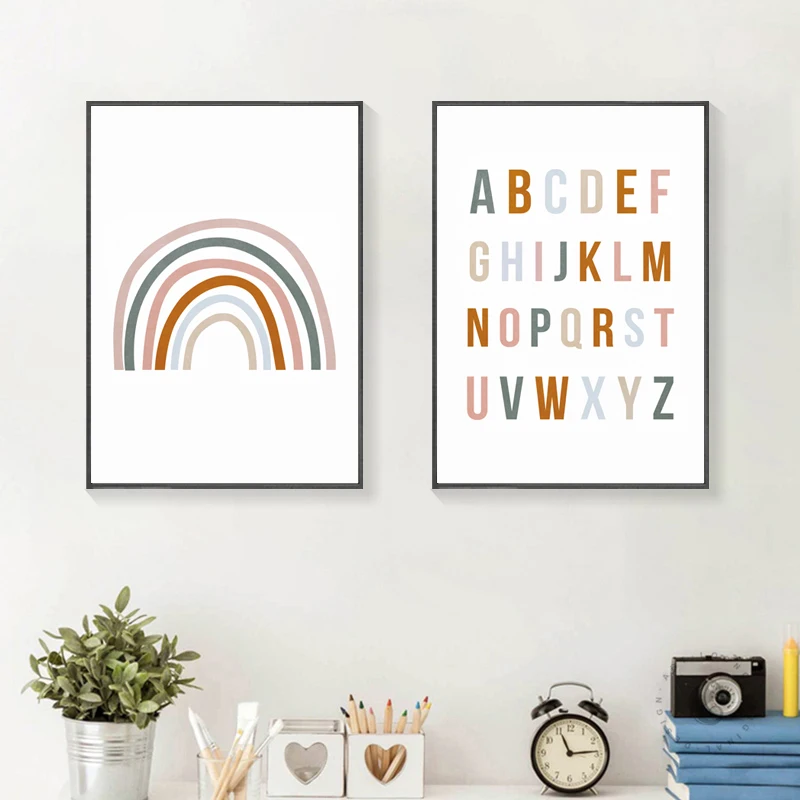 Радуга ABC плакат с алфавитом цитаты печать детской стены искусства холст картина Детская спальня фотографии детский подарок Детская комната Домашний декор