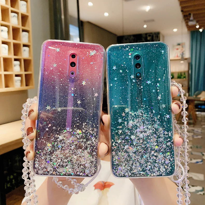 Высококачественный защитный чехол для OPPO Realme X2 Pro 5 Pro C2 чехол мягкий, ТПУ, с блестками блестящая Прозрачная защитная задняя крышка чехол для OPPO Рено Ace 2Z A5 A9 2020