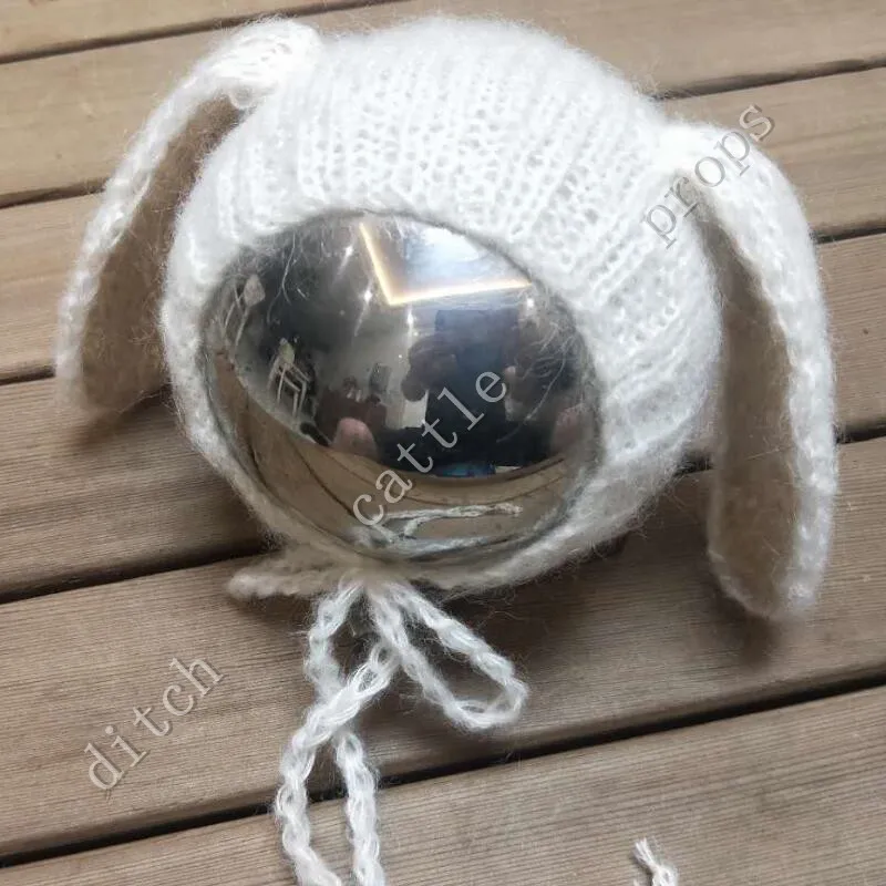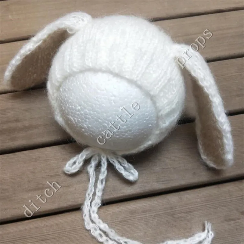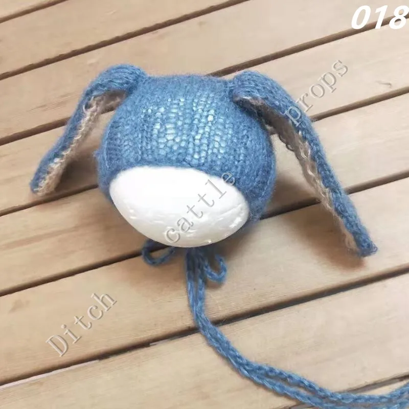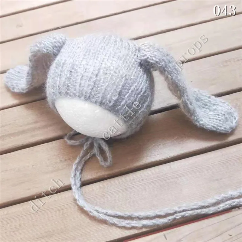 Ручная работа детская ручная вязка мохеровая шапочка реквизит для фотосъемки новорожденных длинные ушные шапочки
