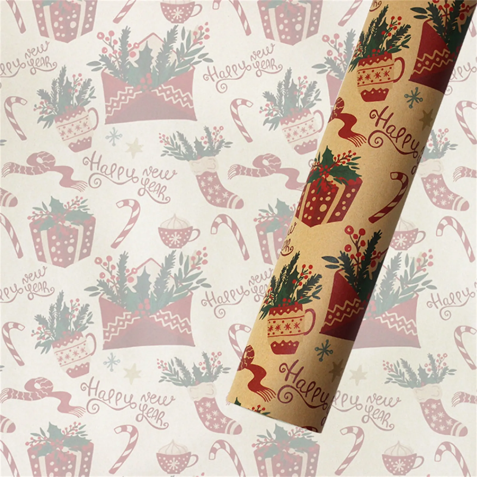 Рождественский принт Рулон крафт-бумаги ремесла художественная подарочная упаковка декоративная бумага