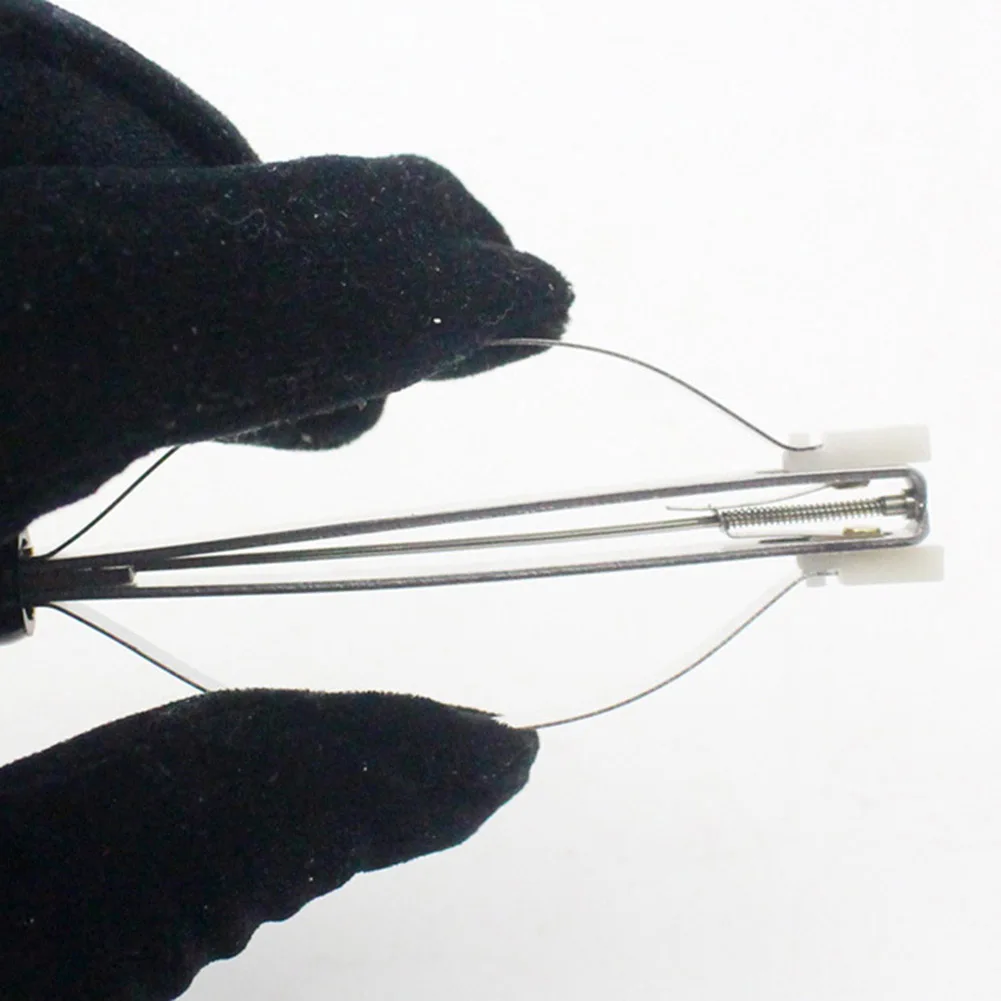 Вставьте иглу игольчатых подъемных плоскогубцев под иглу, закрепите корень иглы и вытяните ногу параллельно циферблату.