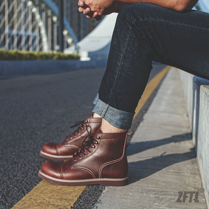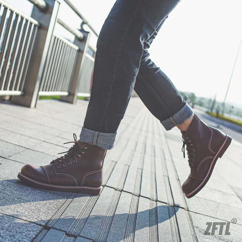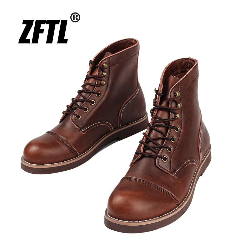 ZFTLмужские ботинки из воловьей кожи в американском ретро стиле; Мужские ботильоны из вощеной кожаные армейский ботинки; Модные мужские ботинки Martin