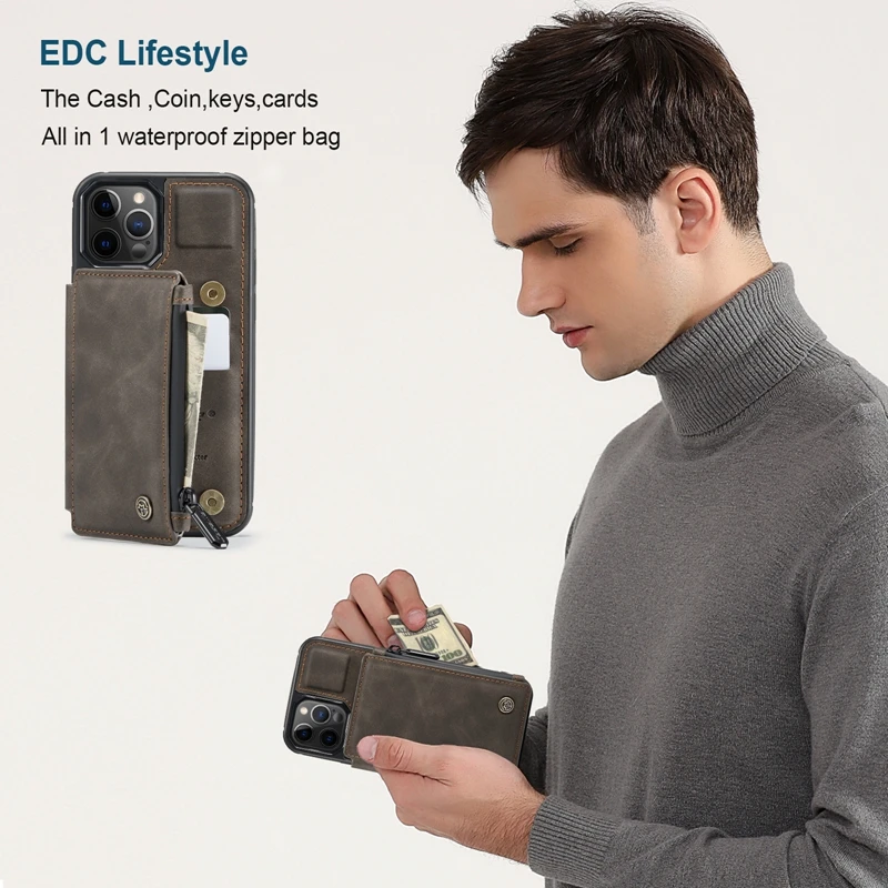 Кожаный чехол-кошелек на молнии для iPhone 13 12 11 Pro XS Max X XR...