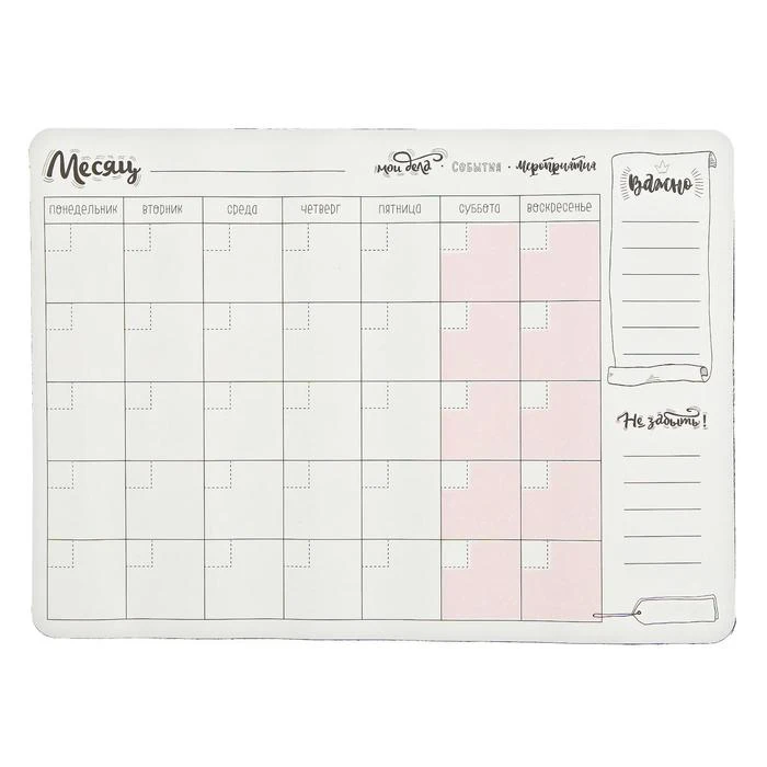 Планер магнитный с маркером "На месяц" 29 х 42 см 4971453