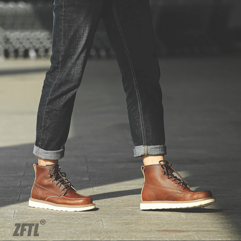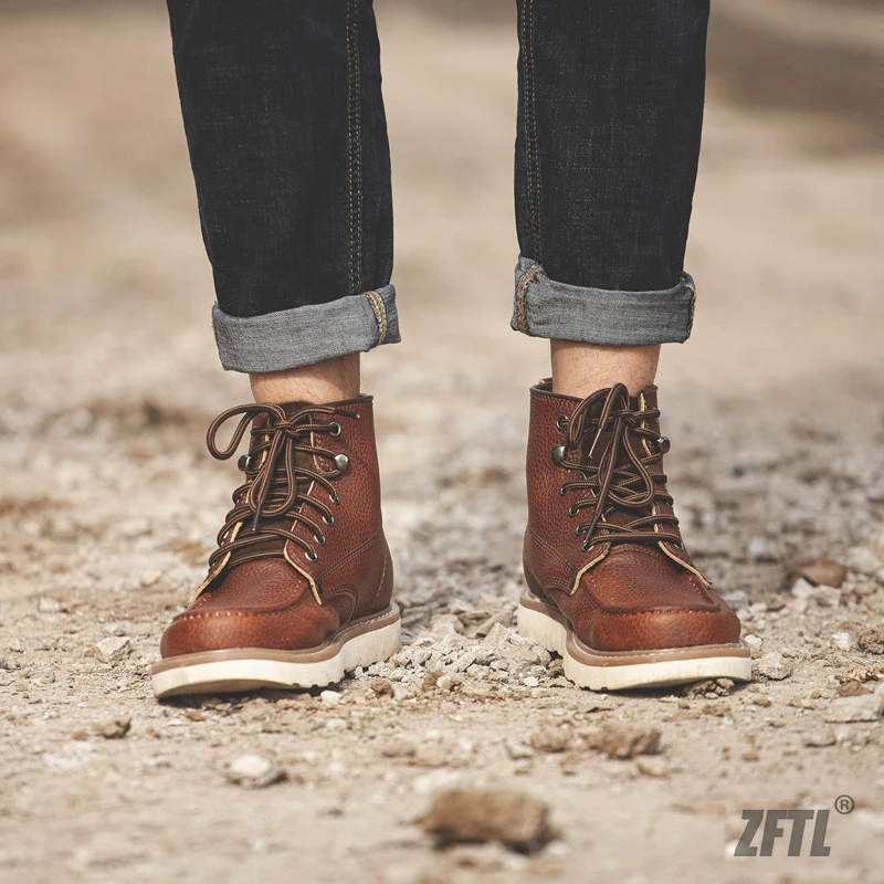 ZFTLмужские ботинки на шнуровке ботинки из воловьей кожи на толстой подошве рабочие ботинки в британском ретро-стиле ботильоны мужские повседневные ботинки на шнуровке