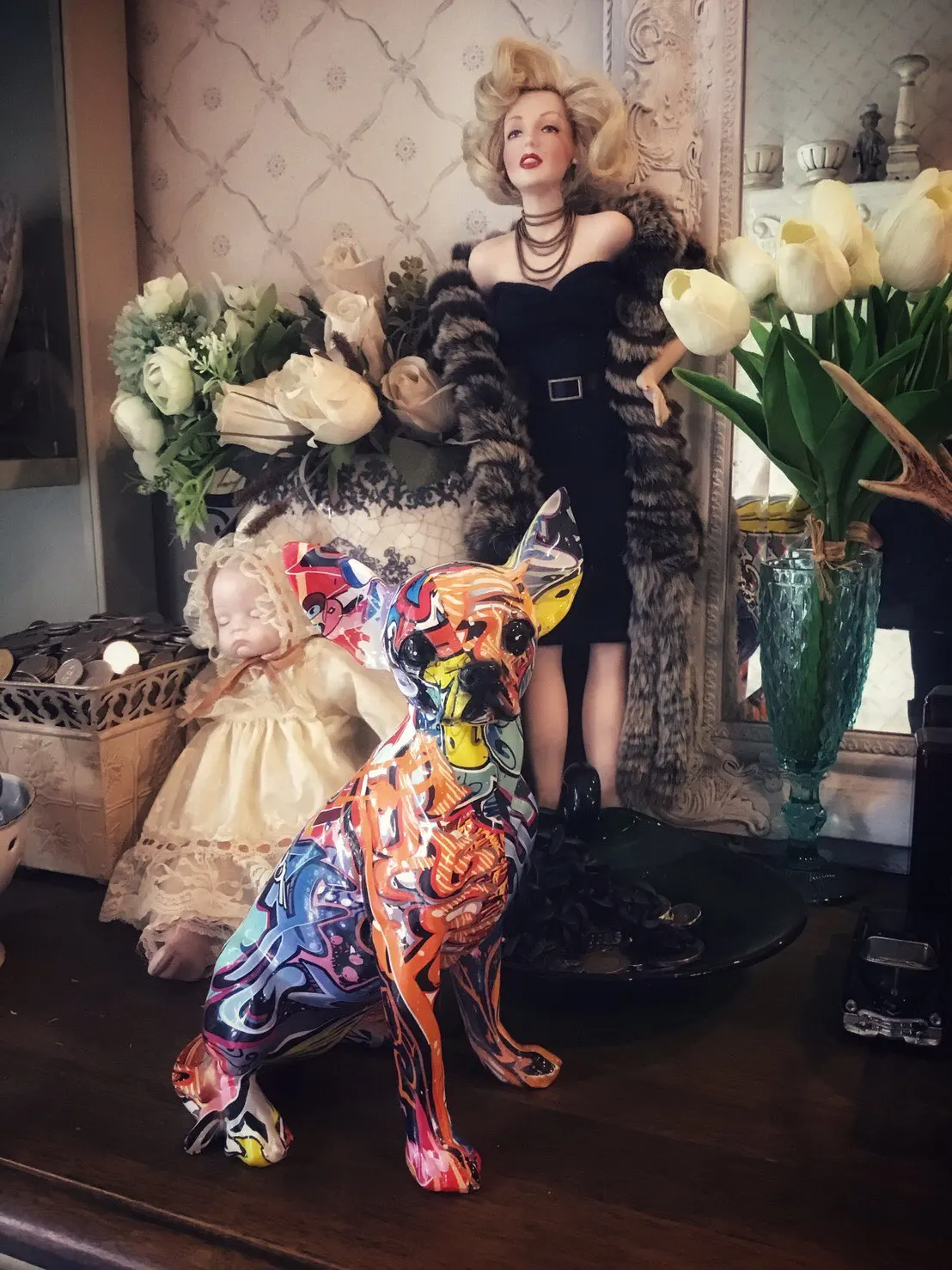 Простая креативная цветная статуя собаки, украшение для гостиной, для дома, входа, винного шкафа, для бульдога Чихуахуа смолы