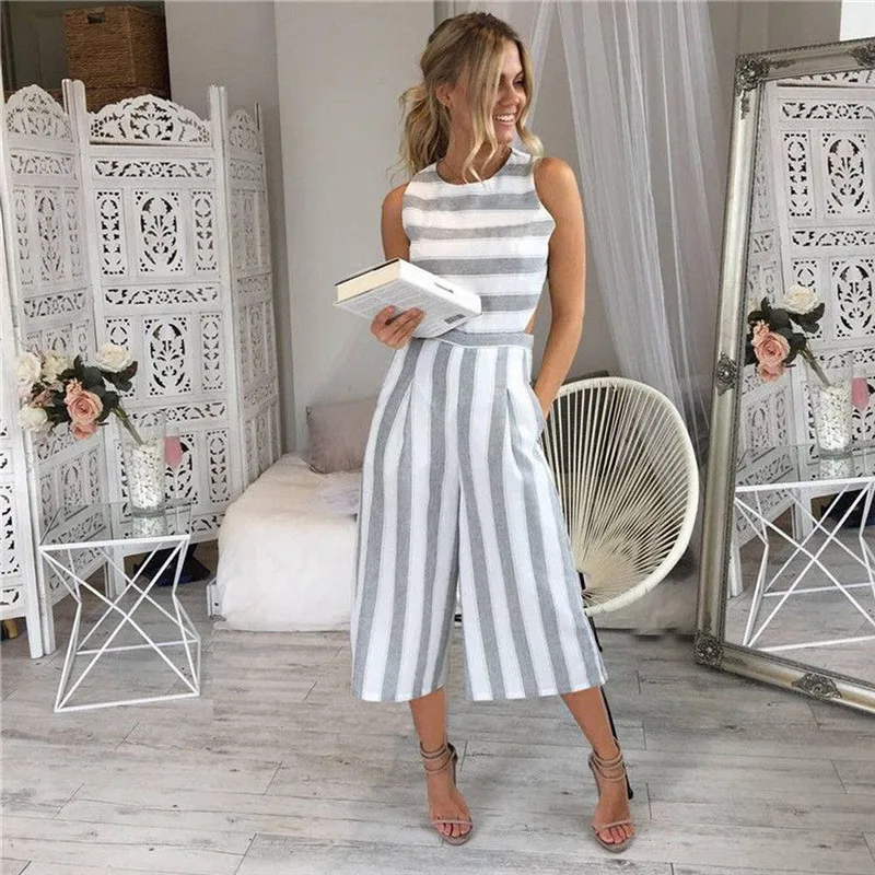Женский комбинезон с открытой спиной, Свободный комбинезон в полоск...