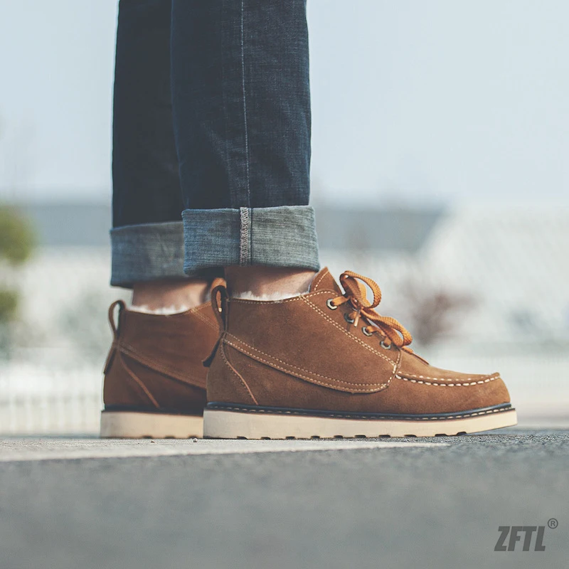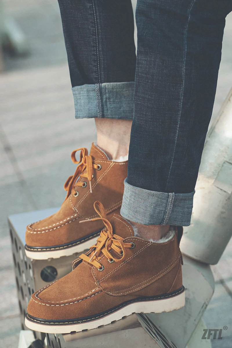 ZFTLмужские зимние ботинки; Зимние полусапоги из овечьей кожи; Теплые хлопковые ботинки в британском стиле; Мужская повседневная обувь с шерстяной подкладкой на нескользящей подошве
